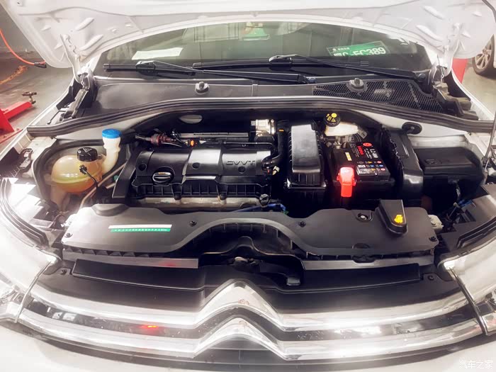 拉开引擎盖,还没有这么近距离的见识过发动机舱里边的内容,哈,原来长这样啊。每次来保养,师傅们都会一并把发动机舱里面也给擦洗干净了。