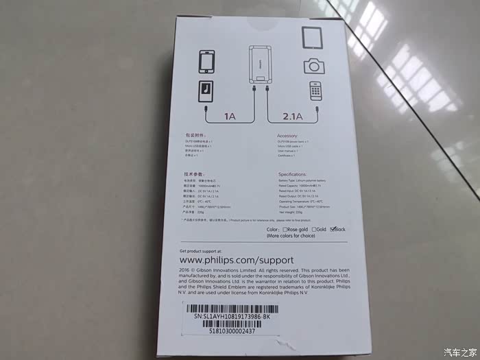 下面就来看看这款菲利浦移动电源的图片实物吧