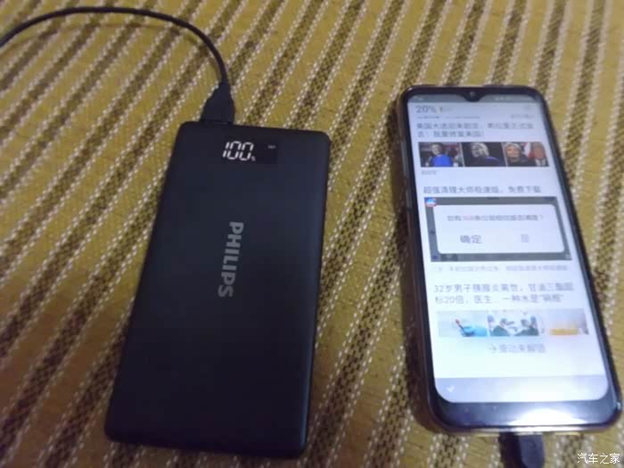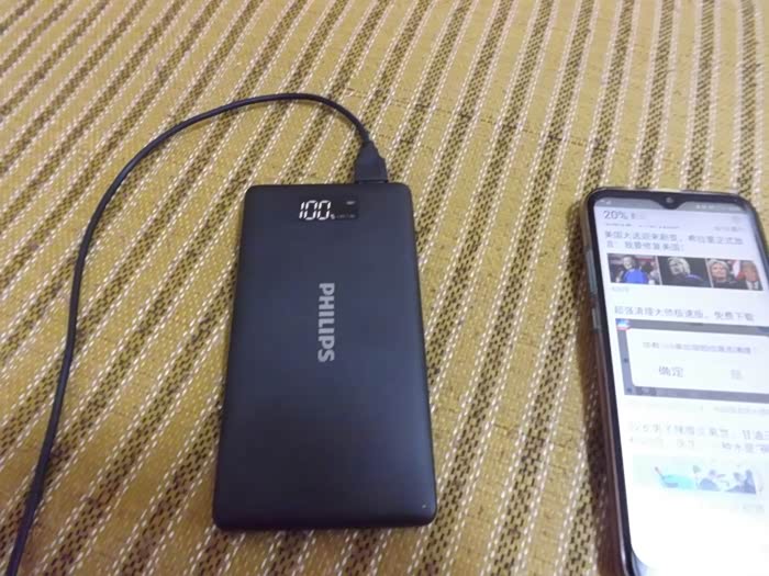 拿到这款菲利浦移动电源之后,看到数字显示屏上的电量为94,就先行充电到100后再加深充电5小时,第二天再专门给我的电量用尽的手机进行充电,大概充电到二个小时就已经给手机充值到64%的电量了,说明充电速度还是不错。和我原先的充电器比较要快很多,说明电量非常充足,确实可智能识别充电设备的电流需求,能自动调节输出电流。我原来用的移动电源主要是在开车时供手机导航时使用,而我用来导航的旧手机电量不足,全靠移动电源来提供,现在这款菲利浦移动电源确实是恰到好处。