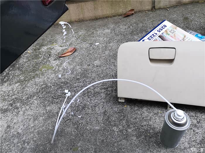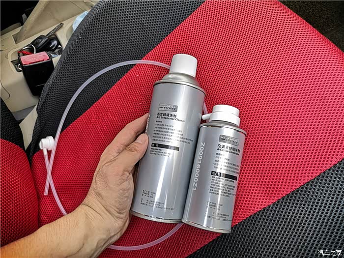 大瓶的是蒸发箱清洗剂,重点看下清洗方法:从空调排水管插入,然后喷入。规范是从排水口直达蒸发箱,而不是从鼓风机,看清楚规范。