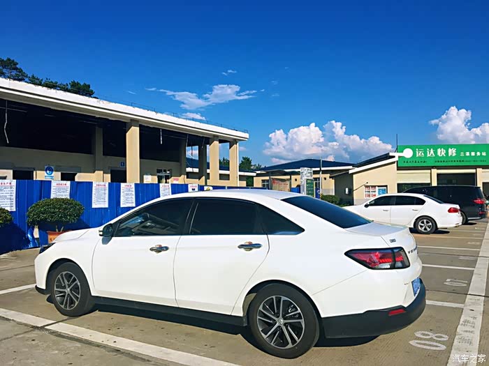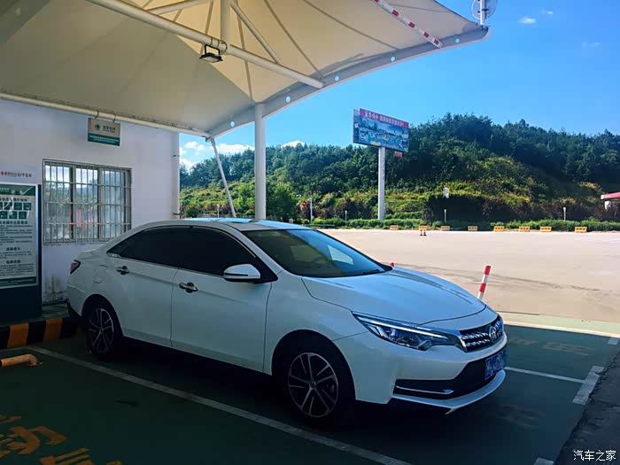 这个是从湖北去安徽丈母娘家的路上,单程560公里,服务区太晒了,所以把车停在了电动车位的棚子下面阴凉一下。