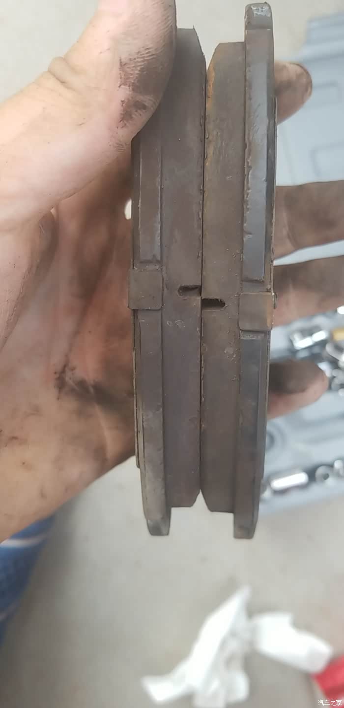 插进去,刹车片拆下来,厚度还可以,清理下粉尘抹点刹车保养的什么膏