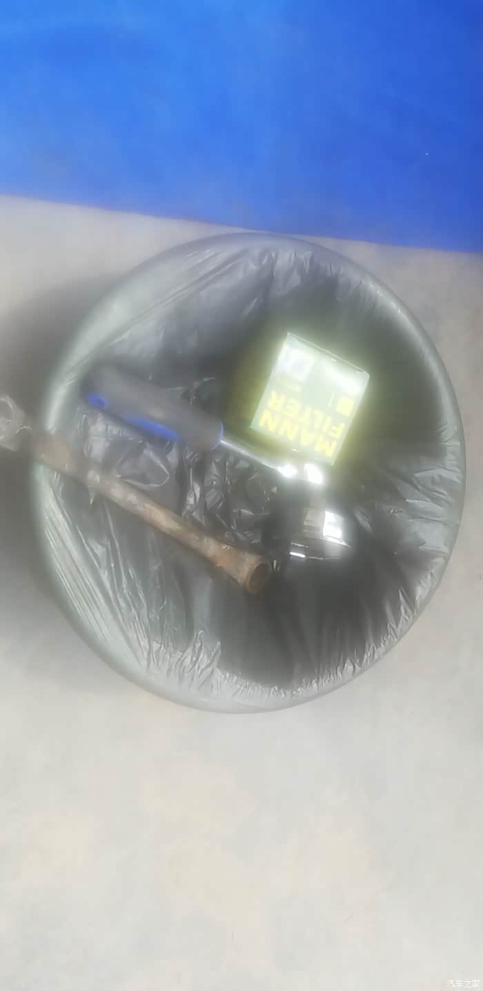 添加到中线,新机滤我上之前就已经灌满油了,不用担心会降到中线以下。打火5分钟继续趴车底没漏,完工!