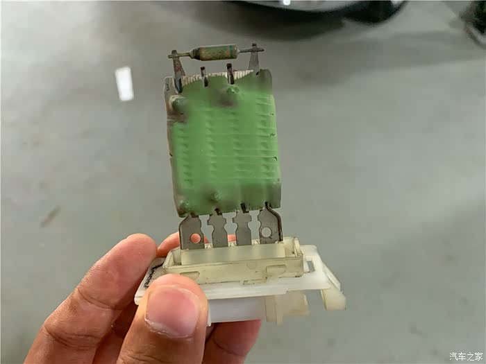 配件已经来了,手中就是空调鼓风机电阻,生产日期也比较新。