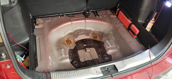 其实我已经清空了备胎和工具包有1年多了,给车子减负了40kg左右。而且发现了家用的填缝剂,居然有隔音效果