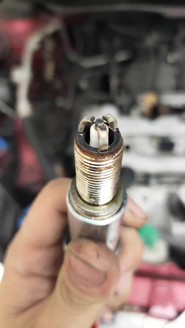 跑了一万多的火花塞,那段时间其实做过进气门清洗和加过添加剂,但是积碳还是存在,看来不是很有效果。而且在负极出现了腐蚀的现象,