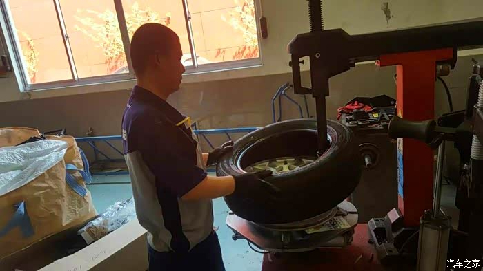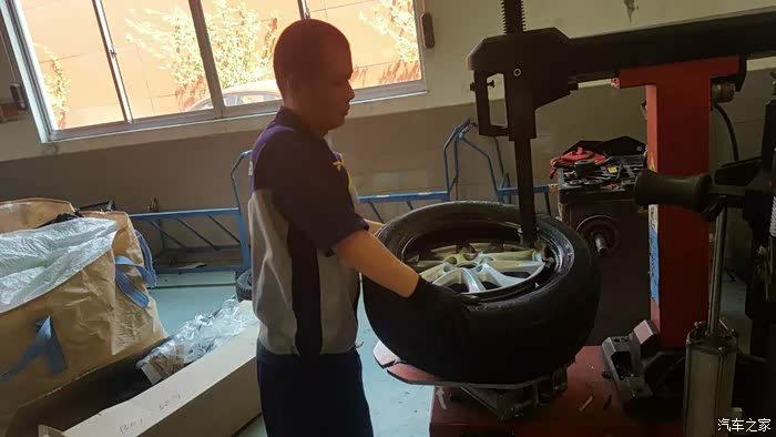 新换的安乘轮胎,我信赖,老板说,幸好是后面一个轮子,这个轮子不是传动轮子,如果要是前轮,需要条换到后轮,把前轮的两个轮胎放到后轮,这样才能让吃力一致。