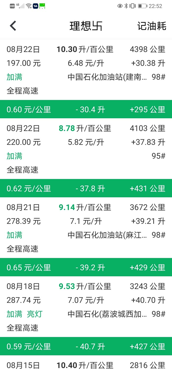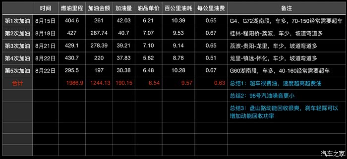 全程烧油近2000公里,90%是高速。因一家老小在车上,高速平均速度100左右。最低油耗8.78L,最高油耗10.39L,最终平均油耗9.57L/百公里(小熊油耗统计),表显8.9L/百公里。