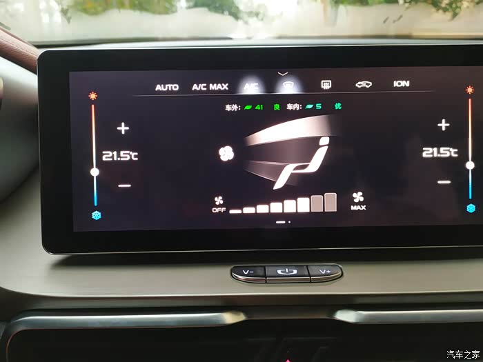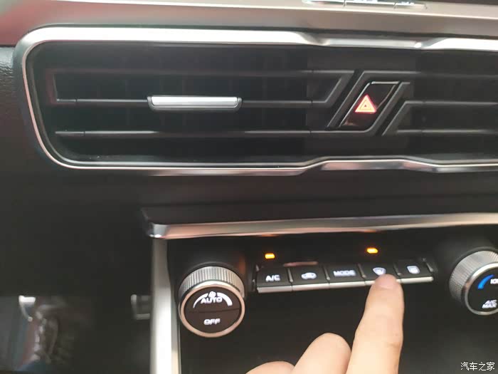 第一个是自动空调拥有的一键除雾,当车辆起雾时,如果是手动空调,想除雾,首先要打开AC开关,把风量调大,风向调整向上,很繁锁的,而自动空调除雾只需要点开除雾开关,空调就会自动把风向对着玻璃,开启最大风量吹冷风,把雾除掉,非常实用。