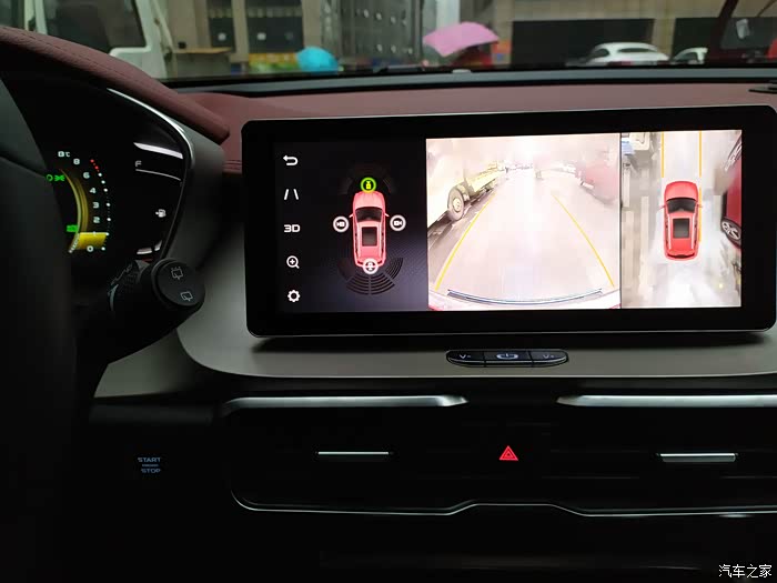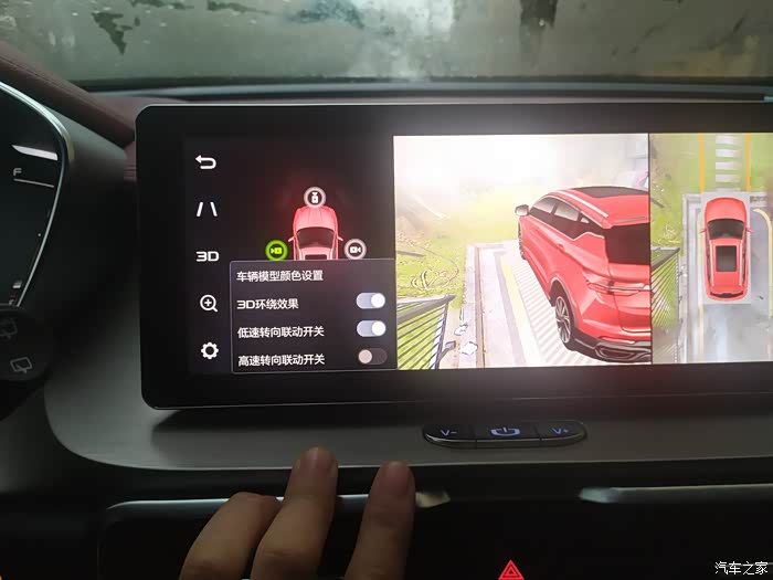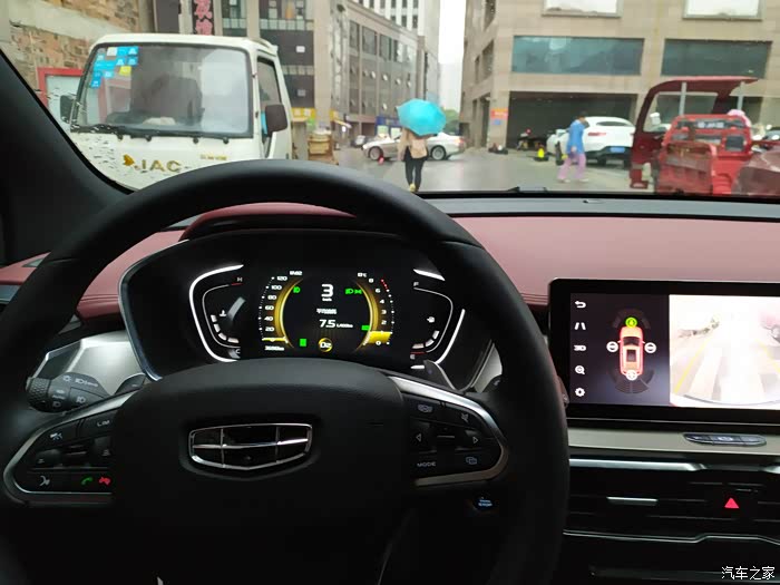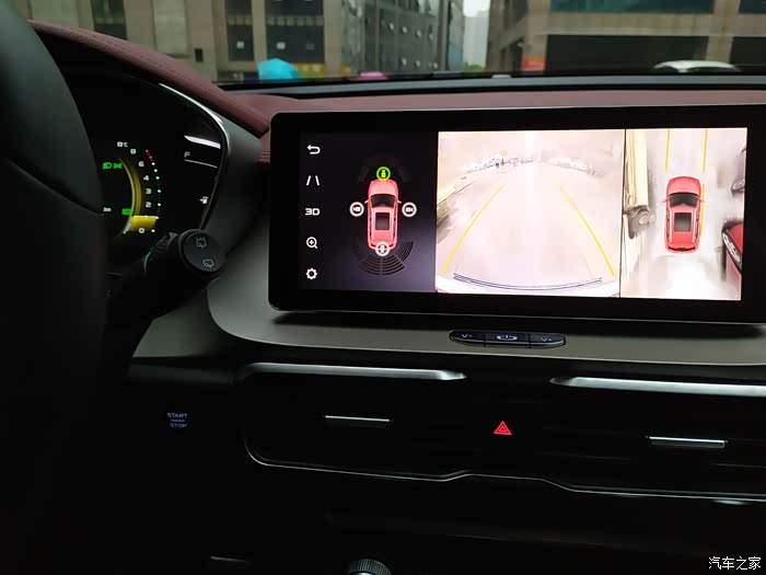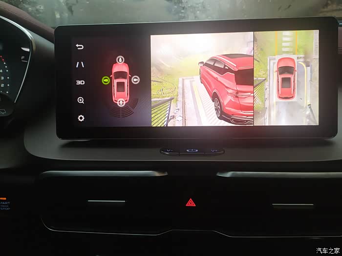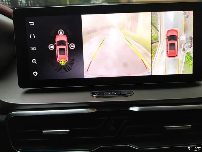 第二个功能就是360度的全景影像,每次打开转向灯的时候360的影像就可以介入,对于我这个新手来说确实方便了不少。在小巷子里就手动开启360影像,就是每次倒车看中间的屏幕,加上后视镜感觉就像站在车外,非常对车辆的位置清晰。