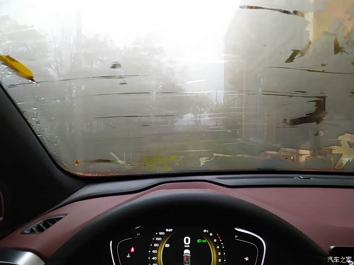 起雾了,用雨刮刮一下,原来水雾在车内。