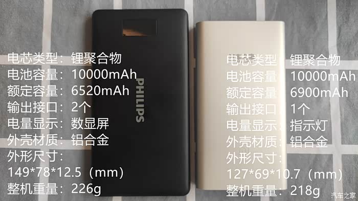 两款移动电源参数对比