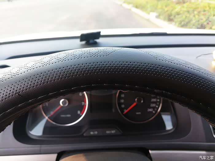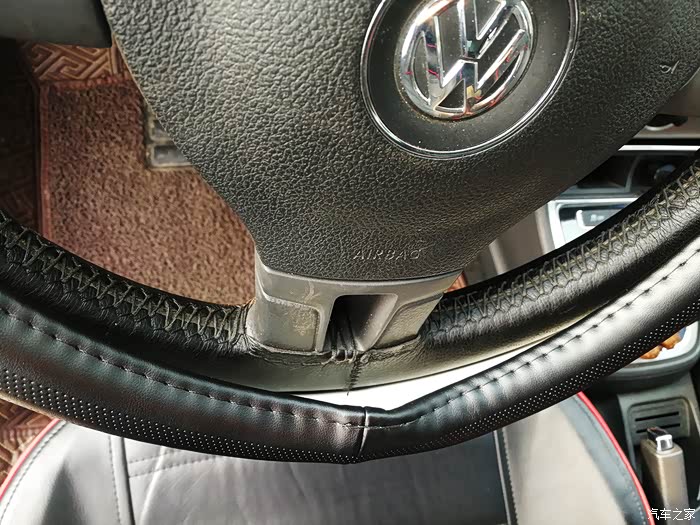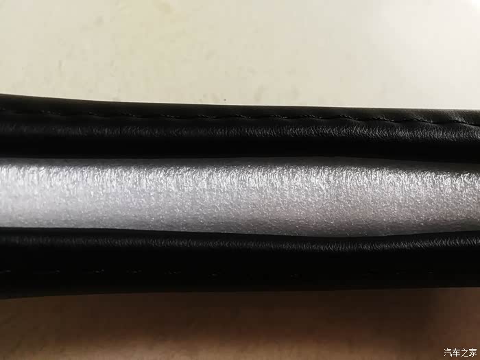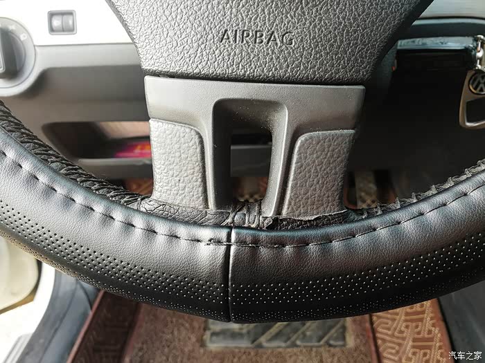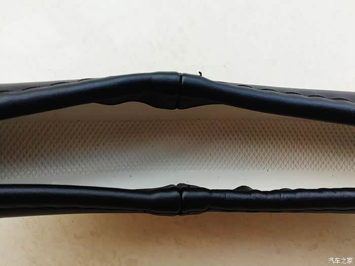 这时发现右上角的方向盘套固定的内侧多,外侧少,非常的难看。