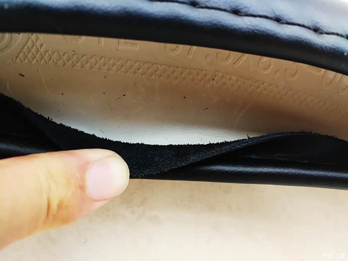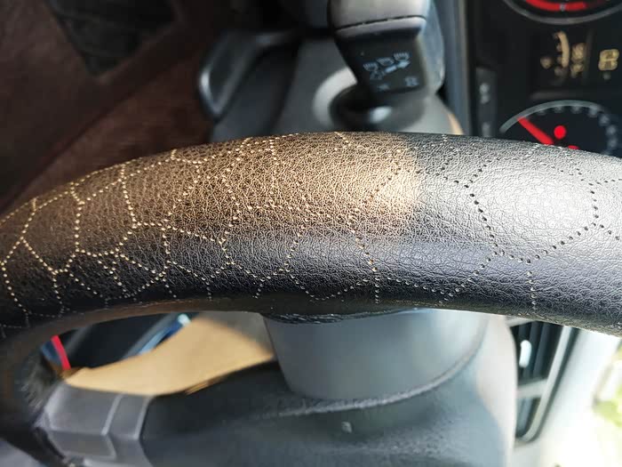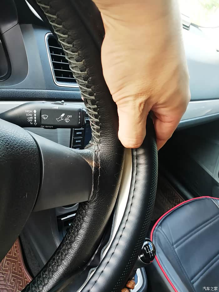 这是原车的手缝方向盘套。