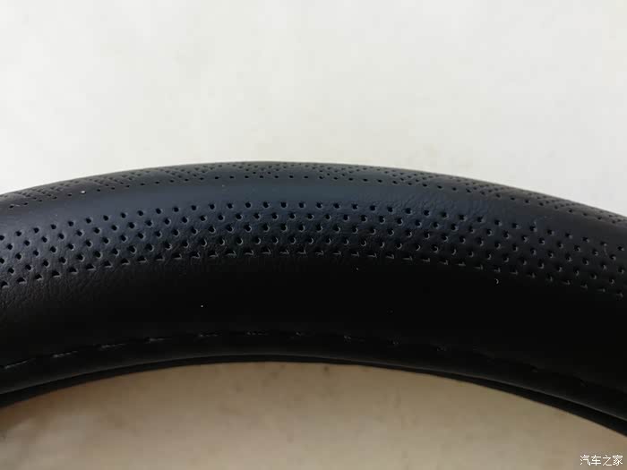 迈未方向盘套侧面的机器打孔,密密麻麻由小及大,非常的排列有序。