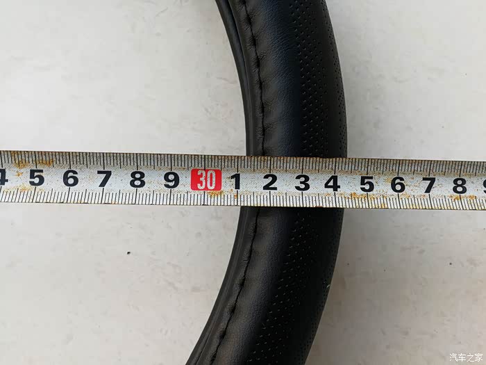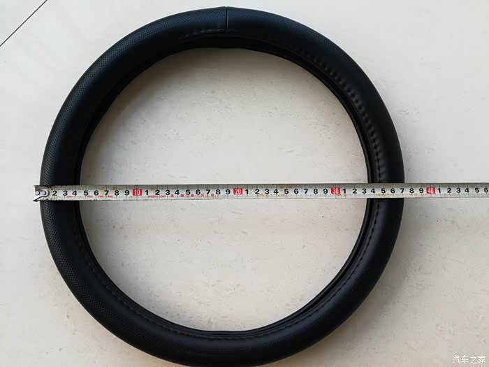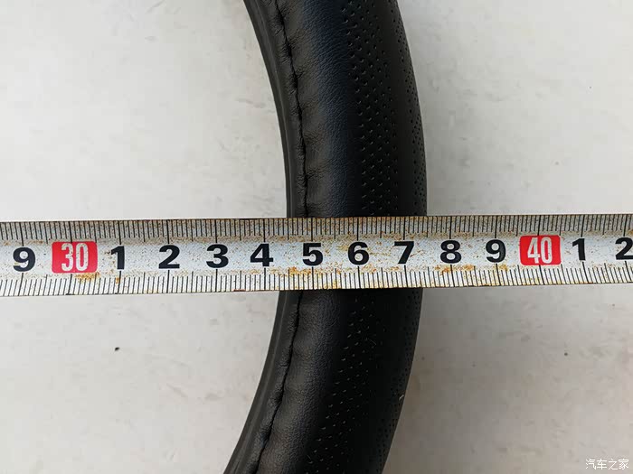 再来测一下迈未方向盘的外径。