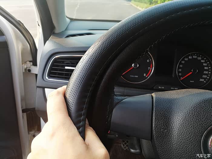 方向盘套上部贴合的非常好。