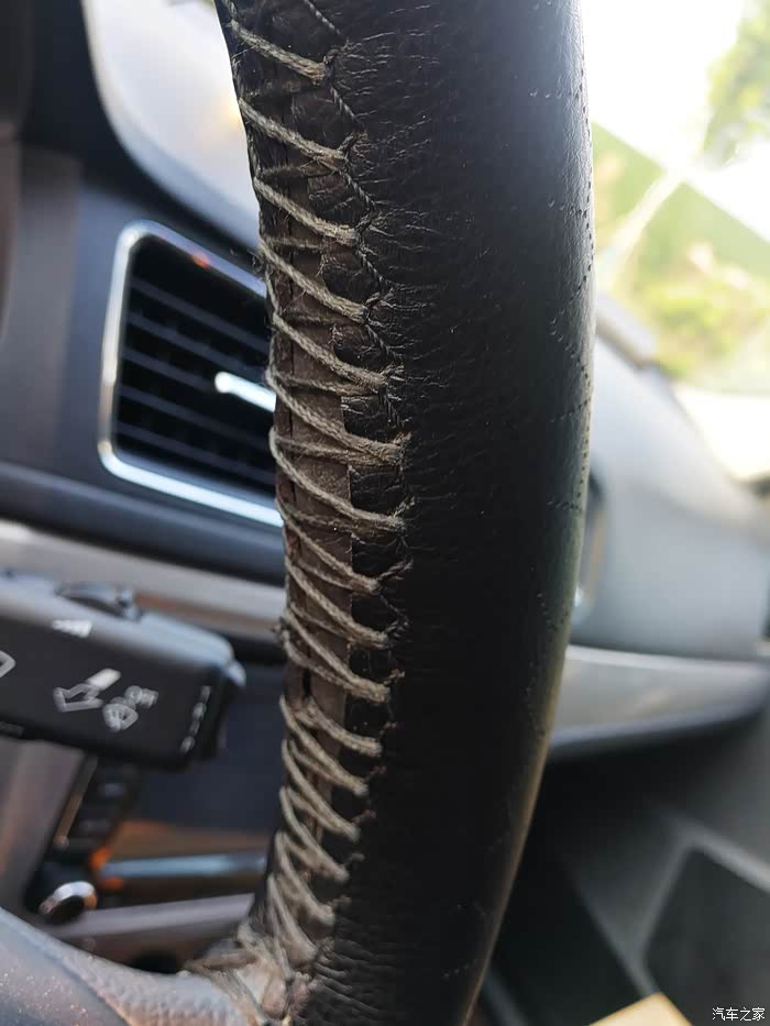 使用了四年多的手缝方向盘套,纹里内藏有污痕。