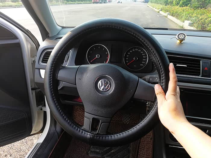 这是固定好左、右的效果,因为没有全部固定,所以效果不太好看,方向盘套有点臃肿。