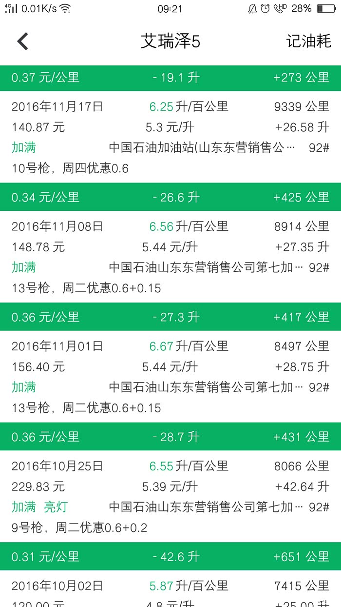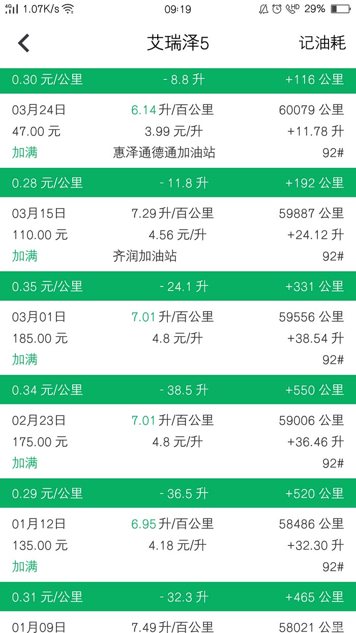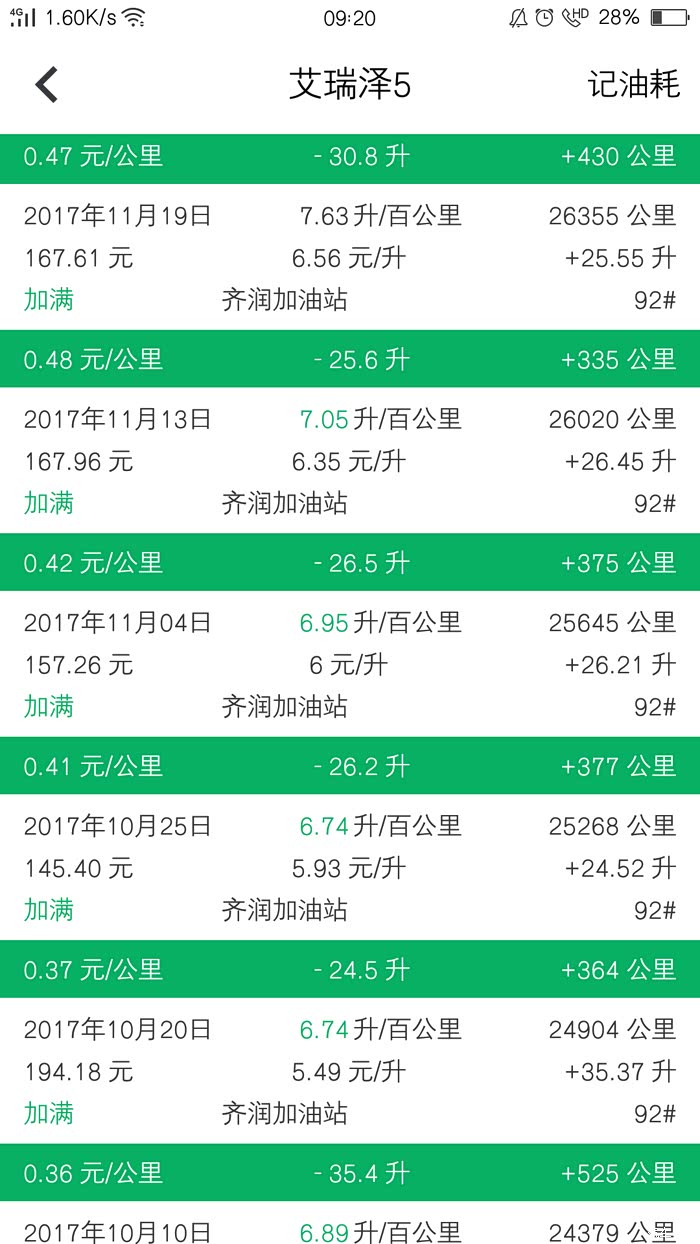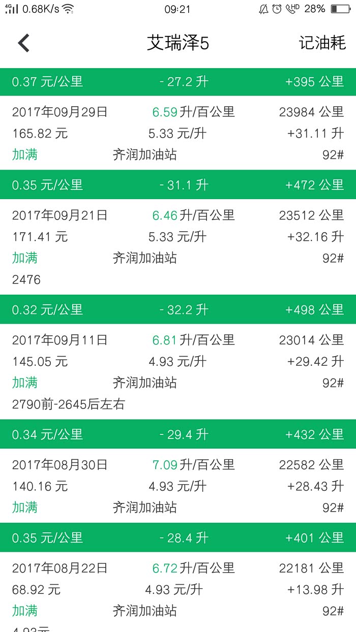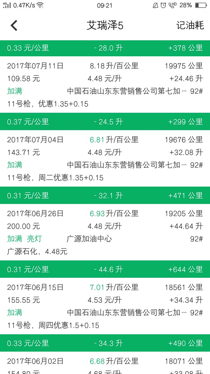 早期的加油方式因为中石油居多,都是加到跳枪,金额后面会有分和角,后期因为中石油太贵,我去企业的加油站(齐成齐润等公司旗下的,这些公司都是中国五百强),加油方式为跳枪以后,不够一块的凑一块。