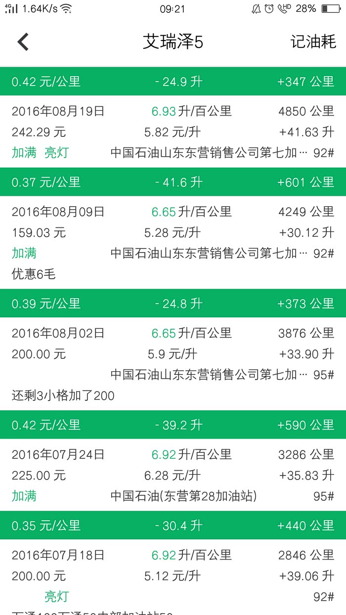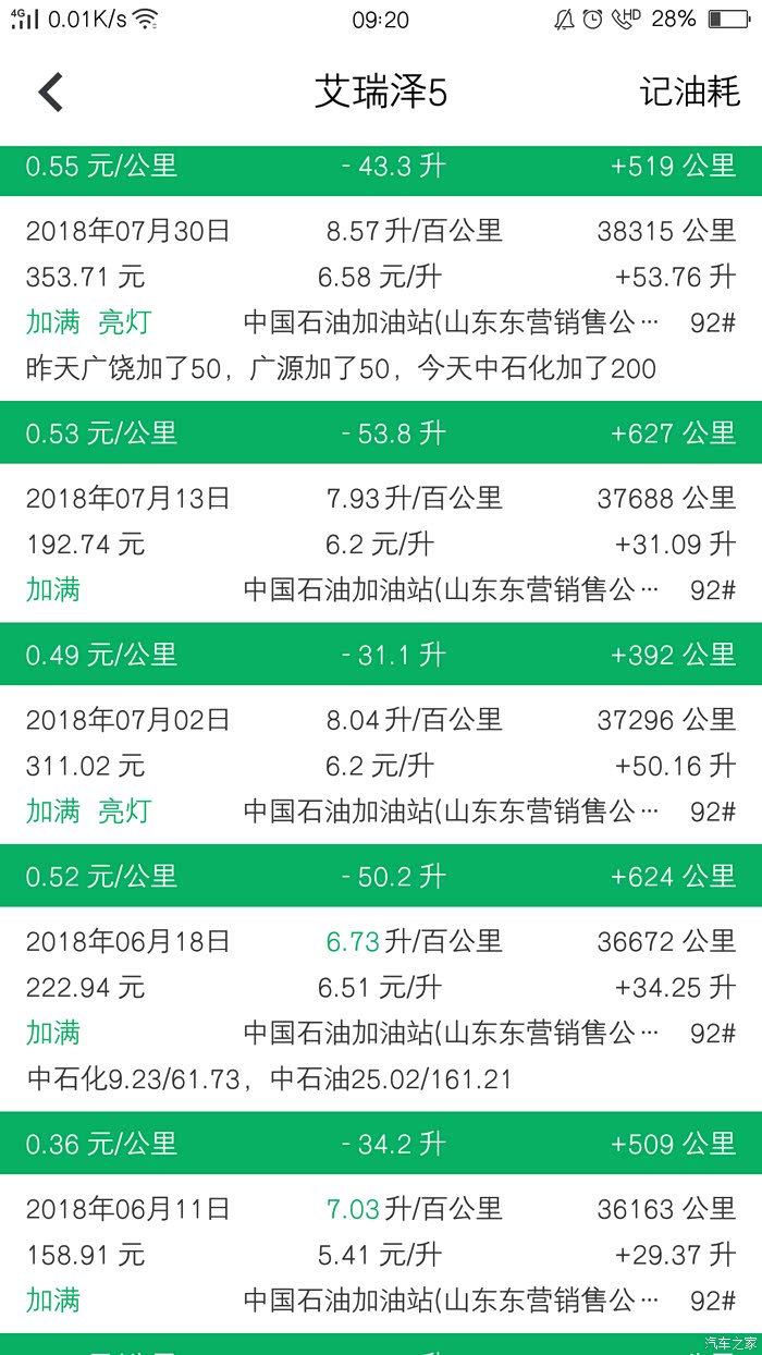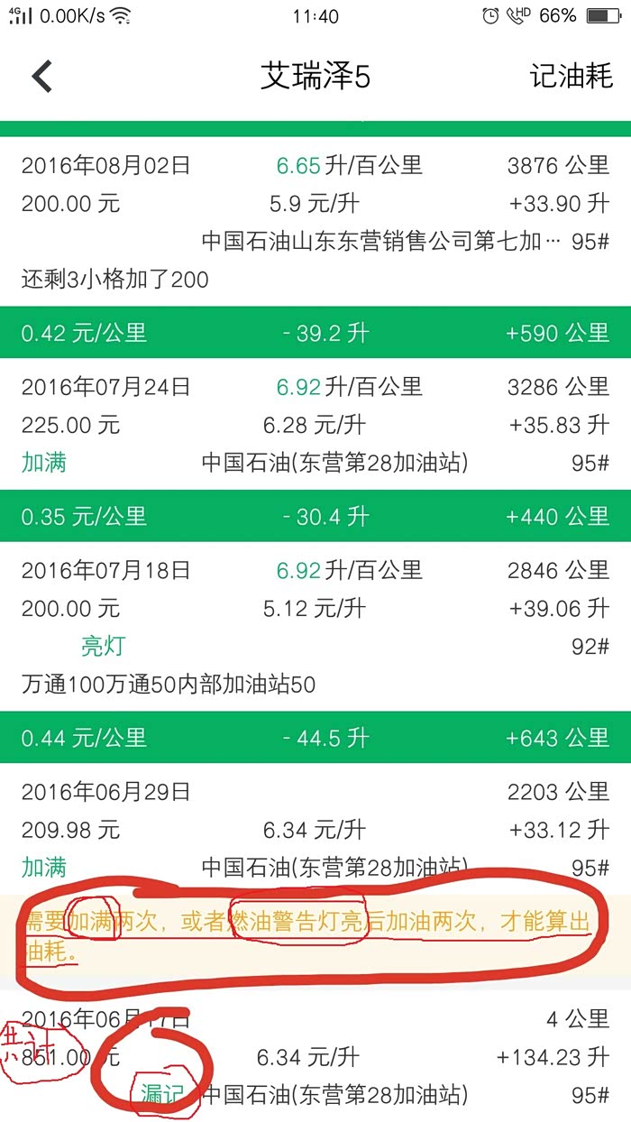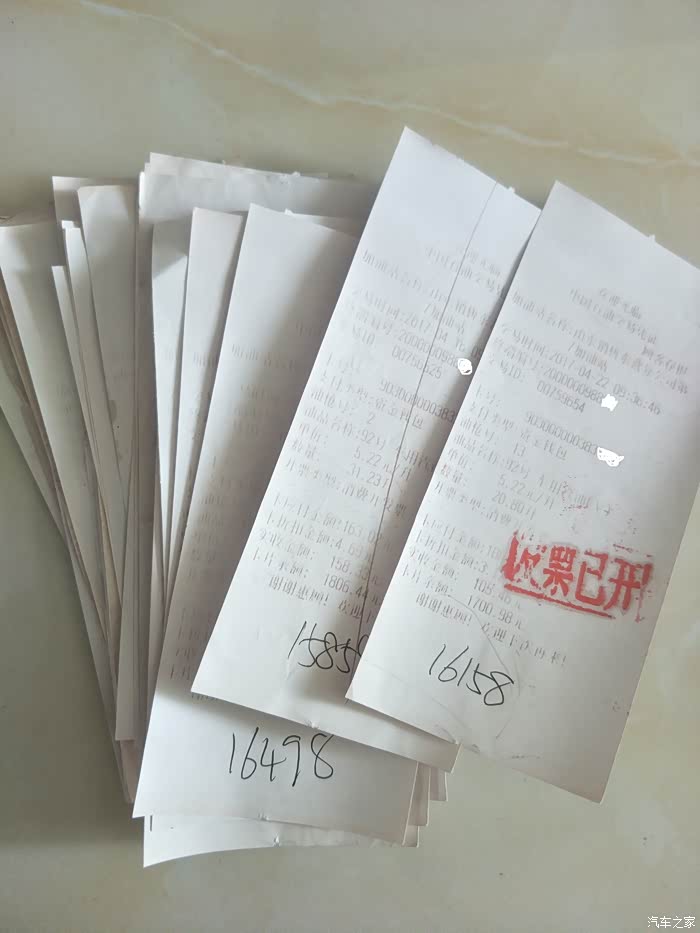 2203公里之前的汽油消耗金额共计851元,都是95号汽油,小票都有,但是因为每次都是五十一百的,都加不到跳枪,无法计算油耗,这2203公里就集中统计了。