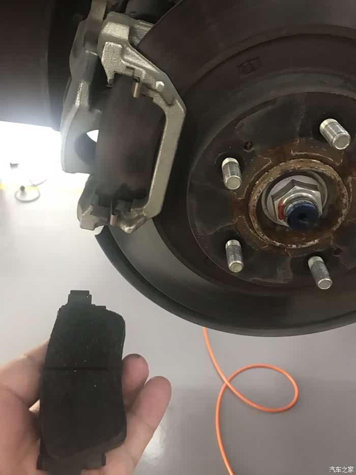 刹车片还有很厚,不需要换,但是刹车盘上面有点锈