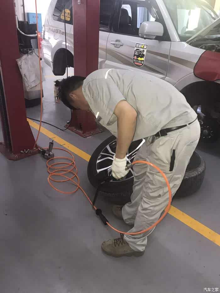 师傅很小心的帮我检查胎压,有人说他胎压报警,其实我觉得很正常,时间久了气压会低一点,我的胎压一直保持在2.5左右,从来都没有报过警不知道他的怎么报警,上次他报警是因为扎钉子了