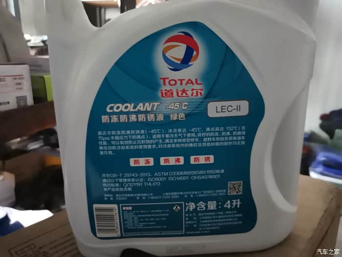 这个冰点-45沸点132,换防冻液的时候没拍照,换了整好一桶