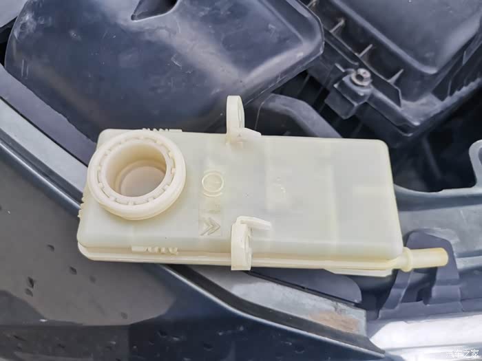 把刹车油壶拆下来,两颗螺丝很好拆,把油管拆下,有一个卡扣,用力捏就开了