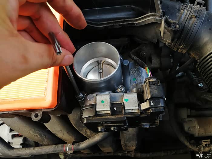 连上废气管,上紧发动机盖板上固定螺丝。节气门清洗完成。