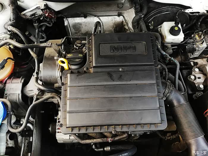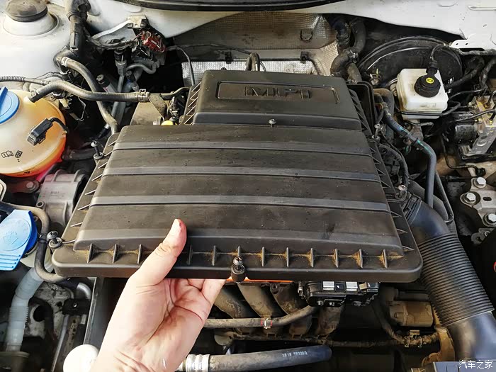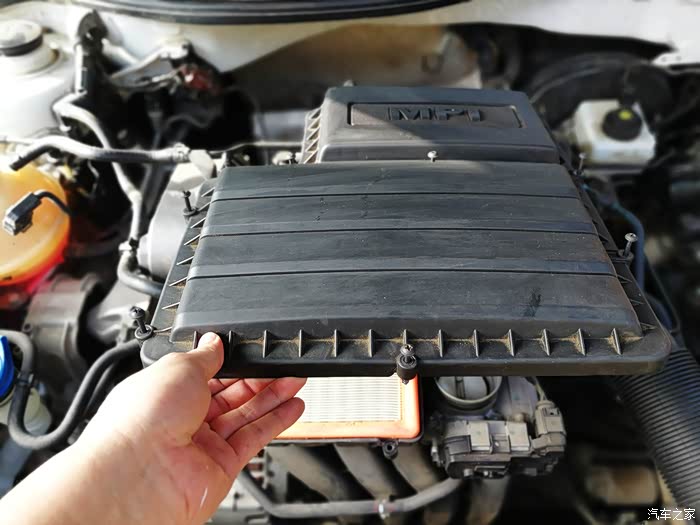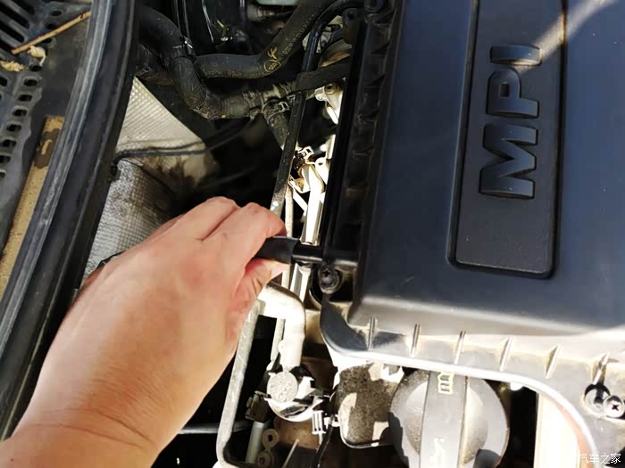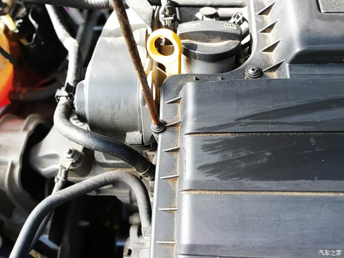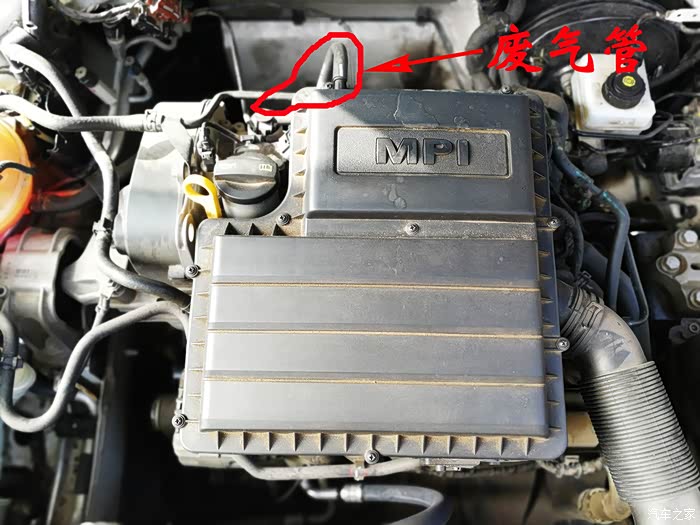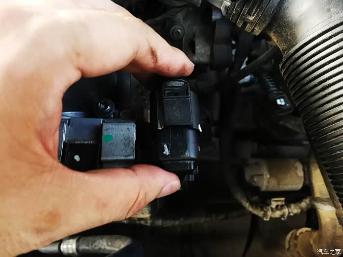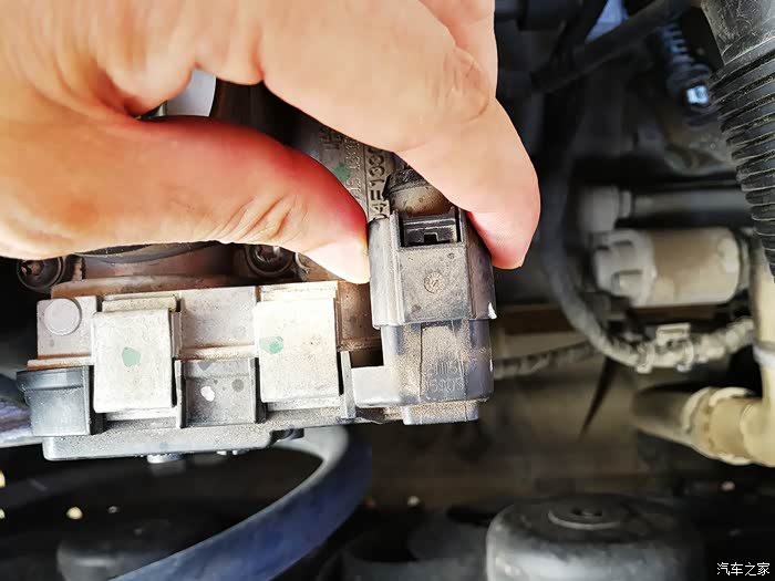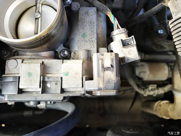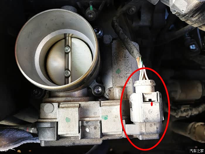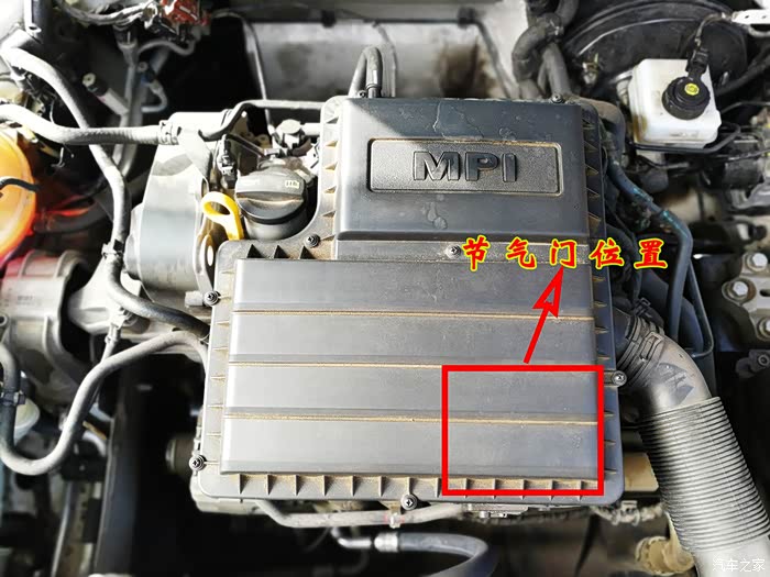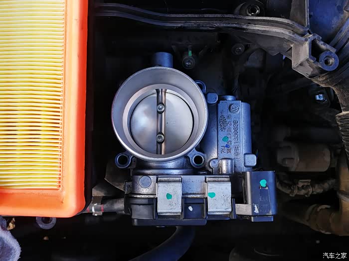 这是卸掉发动机盖板后的节气门位置,对比一下。