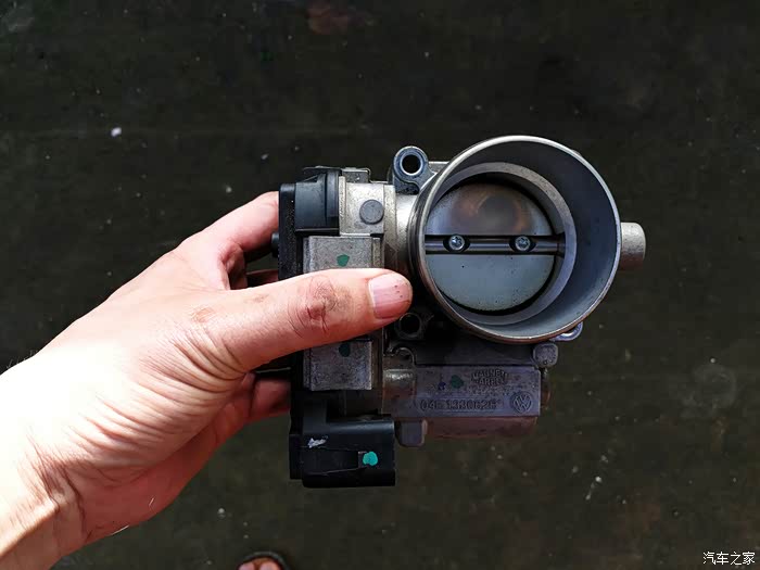 仔细观察一下节气门,看着还是比较的干净。节气阀门边上有少量深色积碳。在这里普通一下节气门小知识。节气门是发动机的“咽喉”,节气门的作用是通过节气阀门的开口来调整控制空气的进气量,空气进入进气管后和汽油混合,成为可燃混合气体,参与燃烧做功。节气门开口大小由油门踏板来控制。朗逸节气门是电子节气门,通过油门踏板深踩或收放,再通过电子传感器更加精确的控制节气门的进气量。