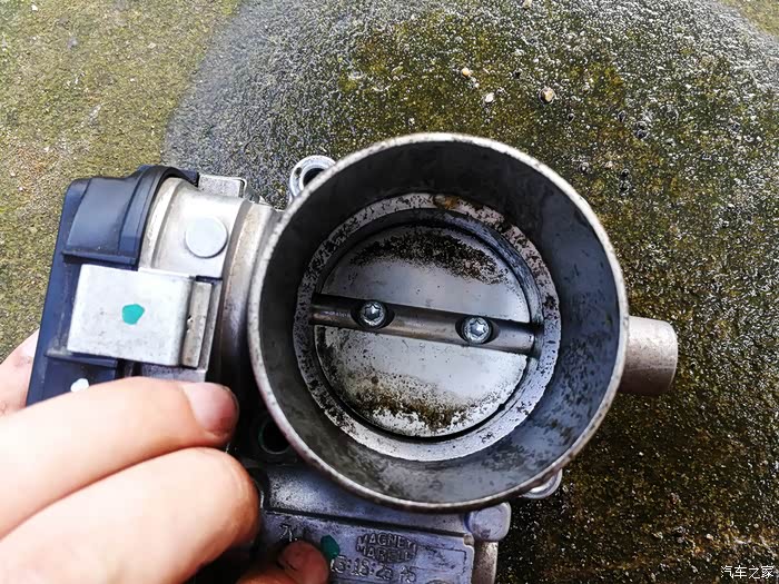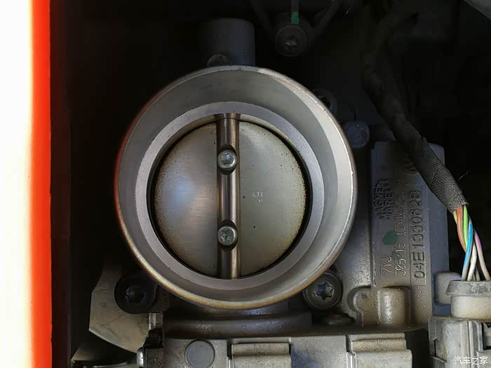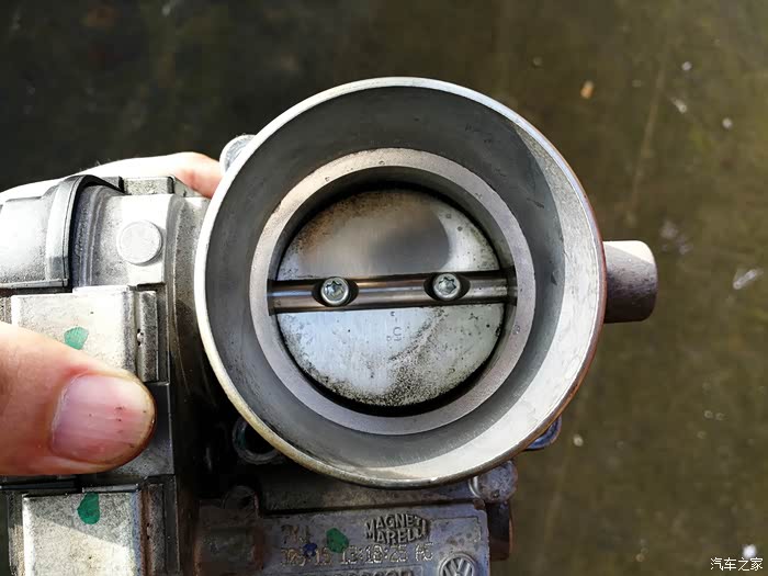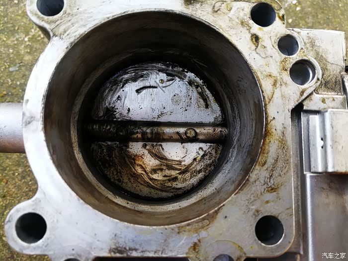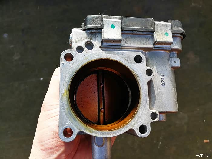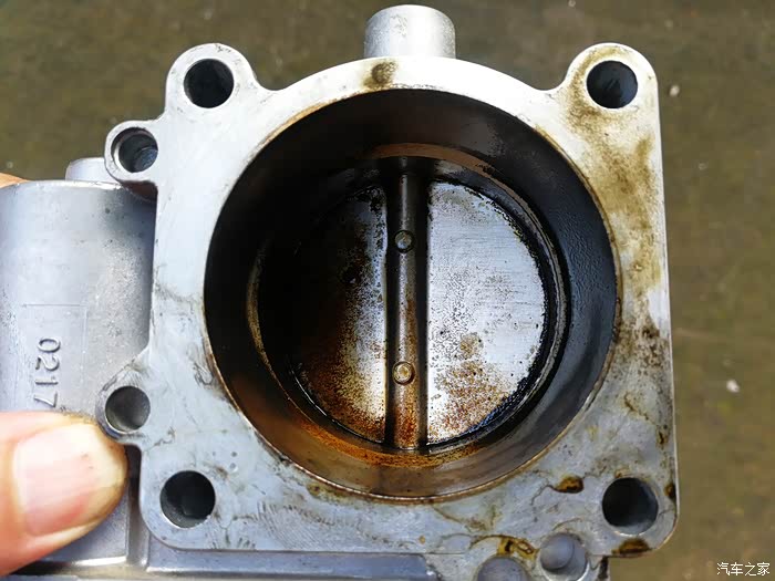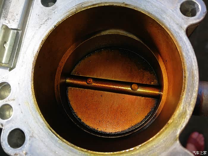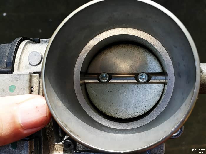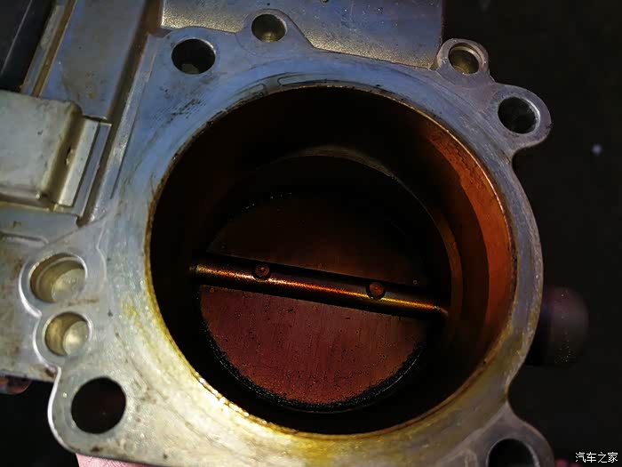 仔细看一下节气门的正面,只有节气门阀片与管壁接口处有积碳。