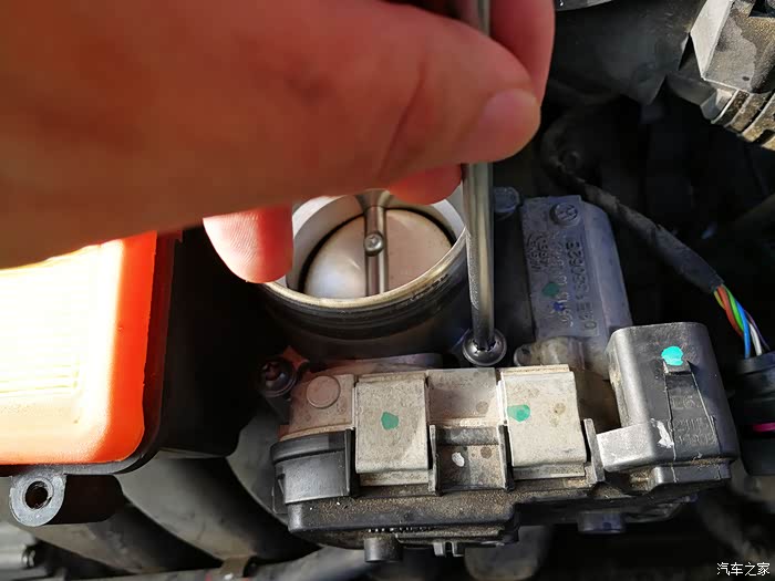 4个固定螺丝拿出放好保存。这时节气门就可以拿掉了。