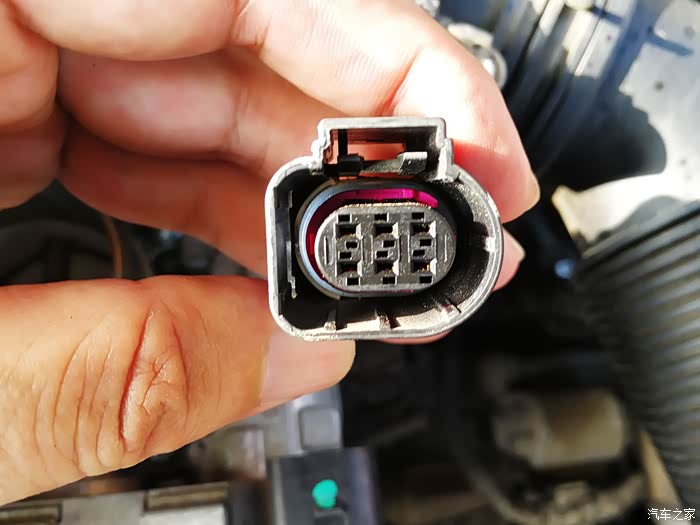 插上六孔线束插头,听到“啪”地一声,就安装上了。
