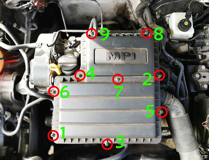 可以对角线卸螺丝。这是我卸螺丝的顺序。每个车友卸螺丝的顺序都不一样,大都对角线卸掉。