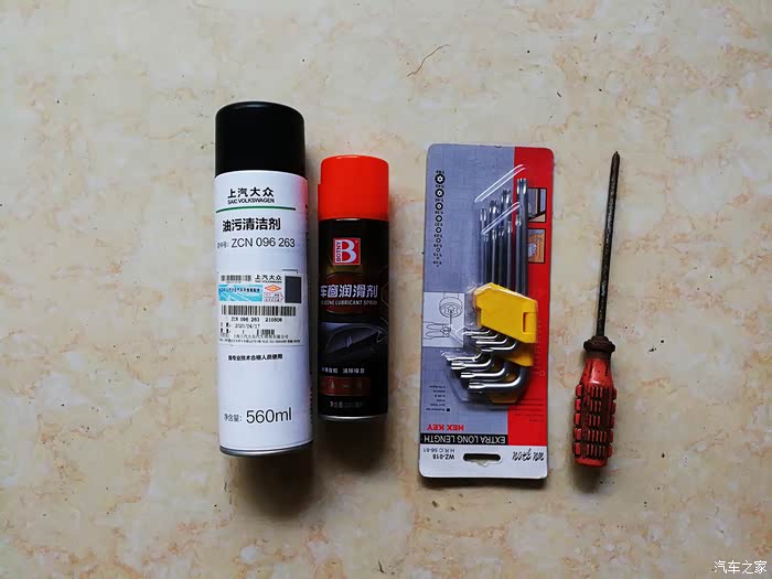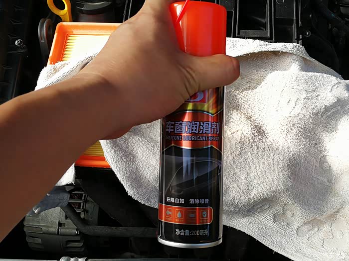 由于两年近30000公里没有清理,怕固定螺丝生锈引起滑丝现象,拿出车窗润滑剂。