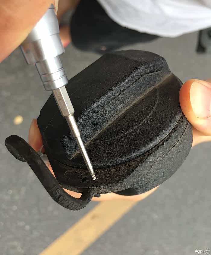 朗逸的油箱盖锁是和车门锁一起的,所以加油时需要先解锁。孔眼看到修复后的油箱盖绳又断了。因为橡胶老化严重没有必要再修复了,再说了买一个油箱盖绳也不贵,8元包邮。干脆买一个新来的自己更换。
