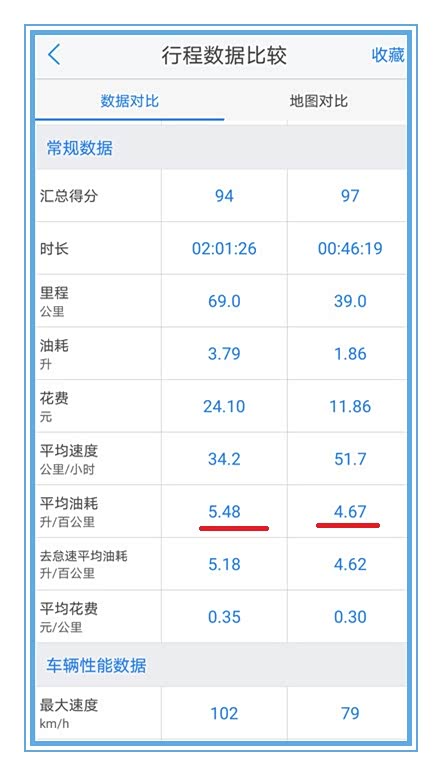 翻看之前的行驶数据,也能超出几次超低油耗,发现并不是开的越快油耗越低。