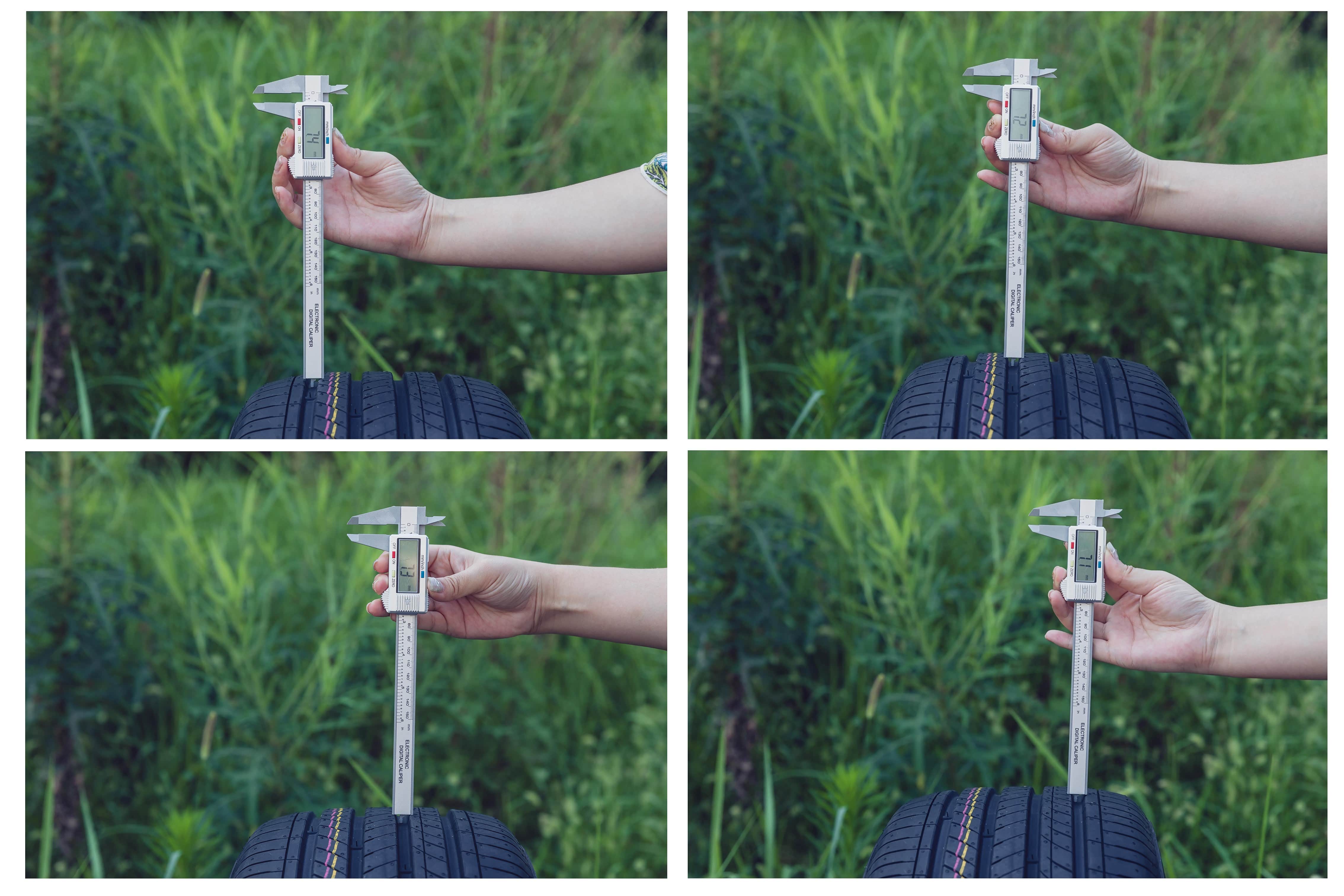 韩泰H462四条沟槽纵向深度正常,从左到右实测深度为:7.40mm\7.20mm\7.30mm\7.10mm