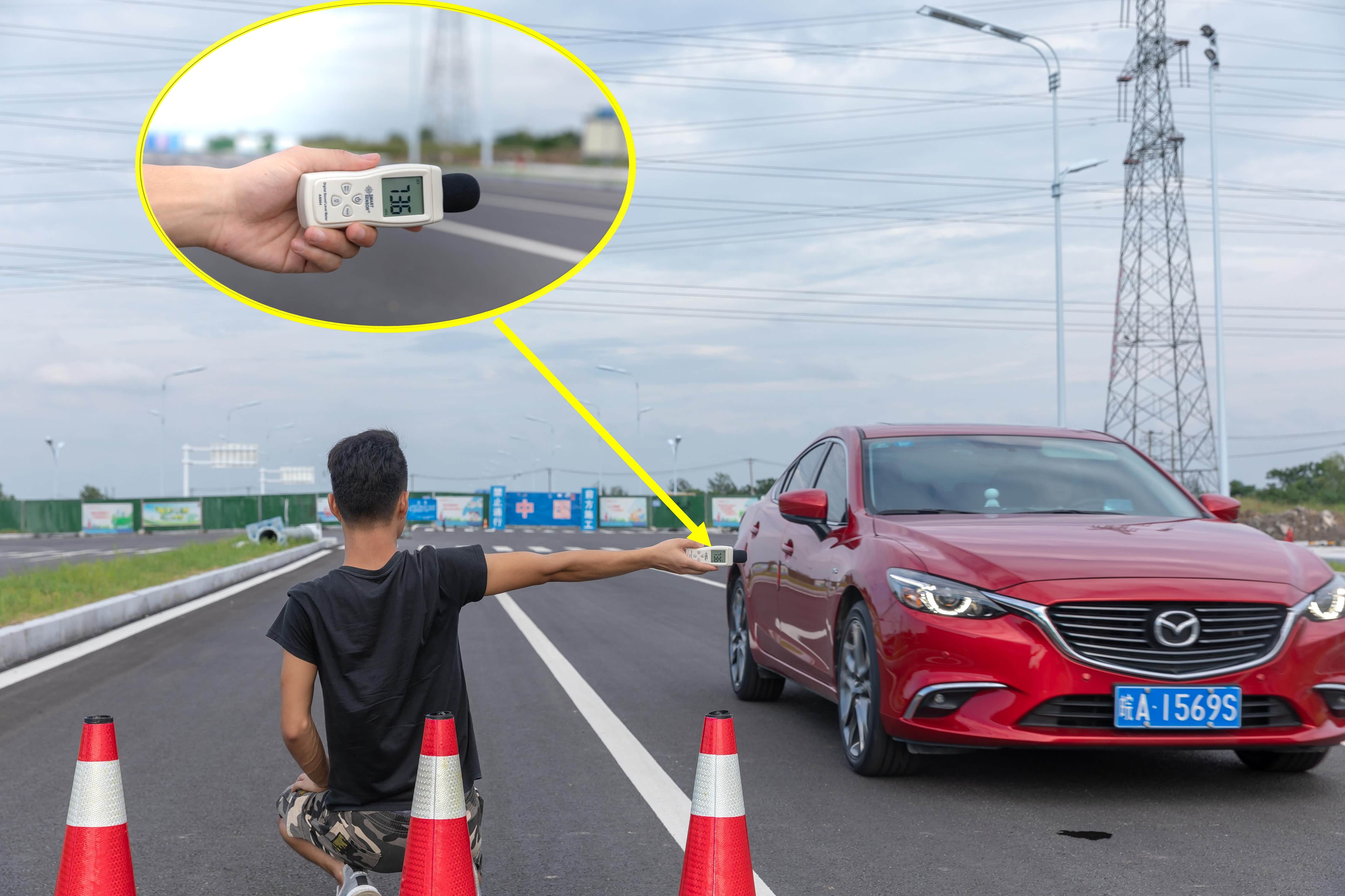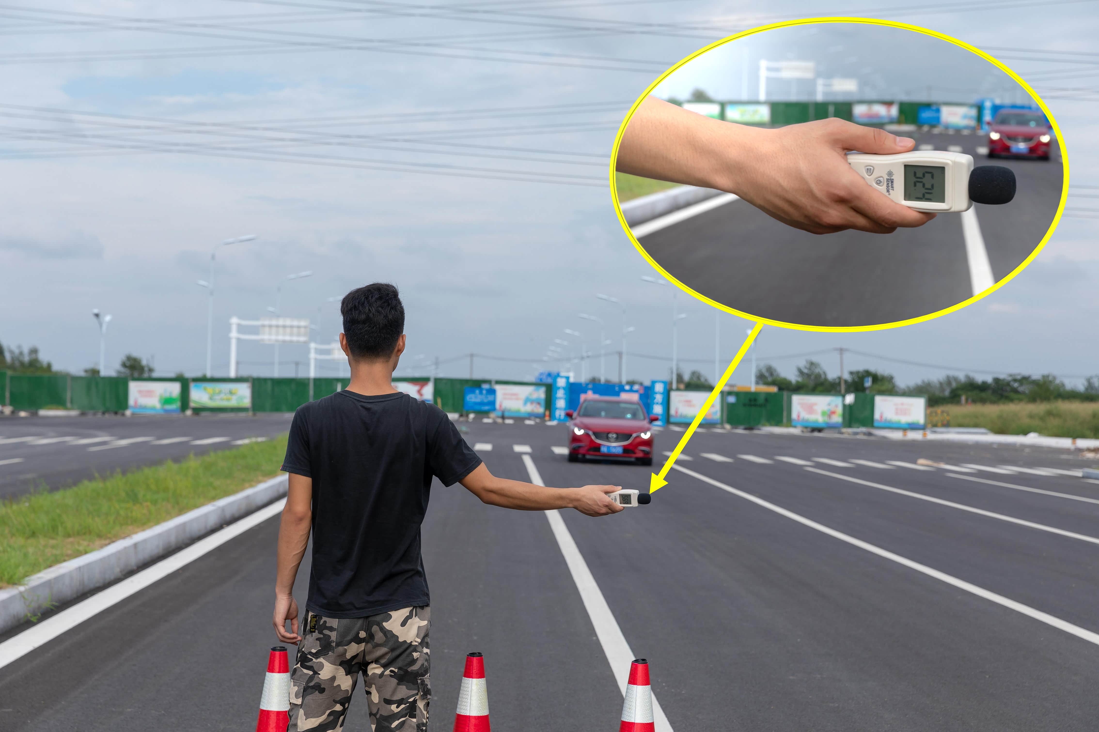既然做完了车内的静音测试,我们也想试试车外音的测试,经过20分钟多分钟的车程,我们好不容易找到一条半封闭的测试路面。现场进行了简单的布置,并且准备好测试的分贝仪后,测试马上开始。