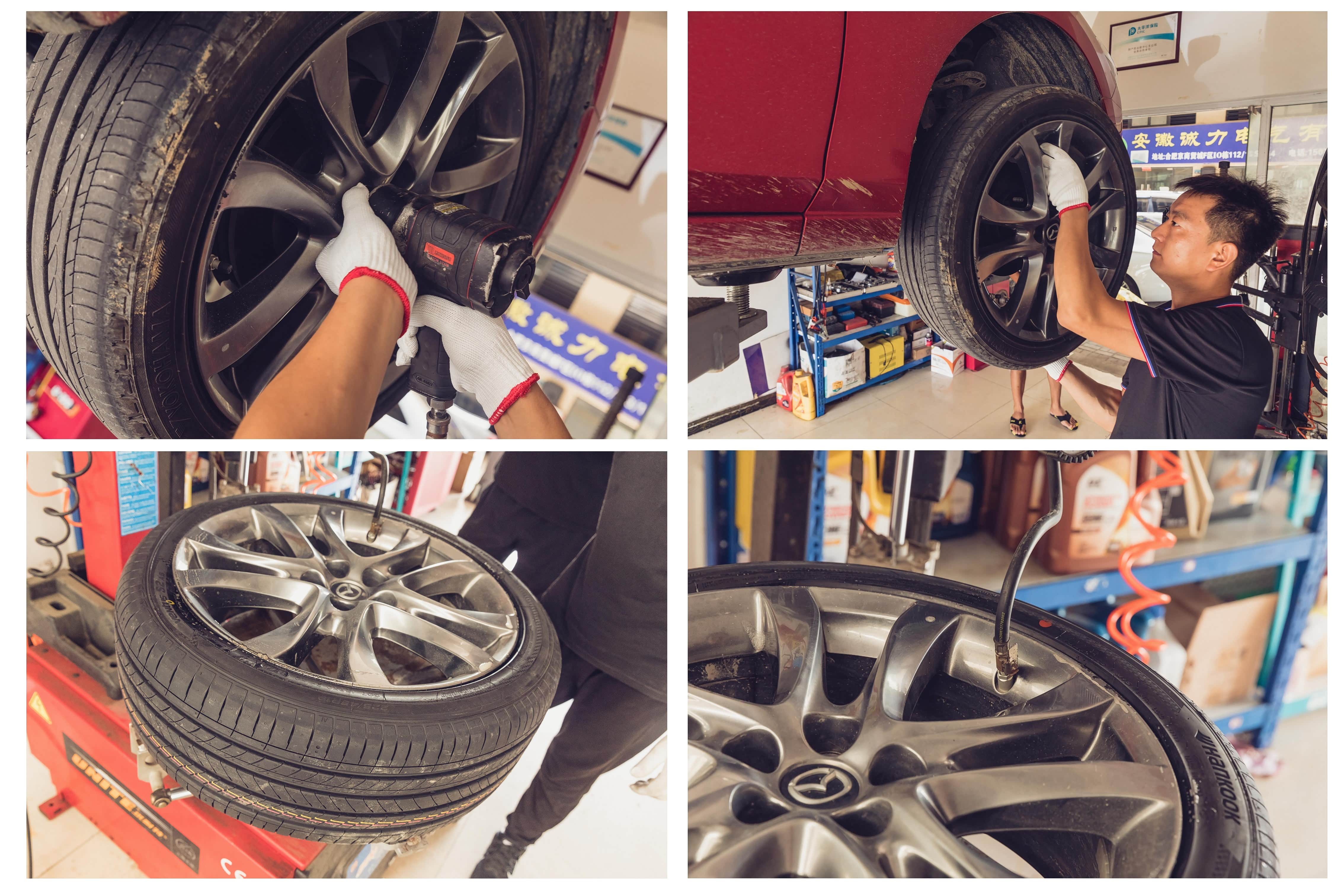 新旧轮胎的重量是不同的,换新胎少不了的一个步骤就是做动平衡。新胎做完动平衡后,再装上车。