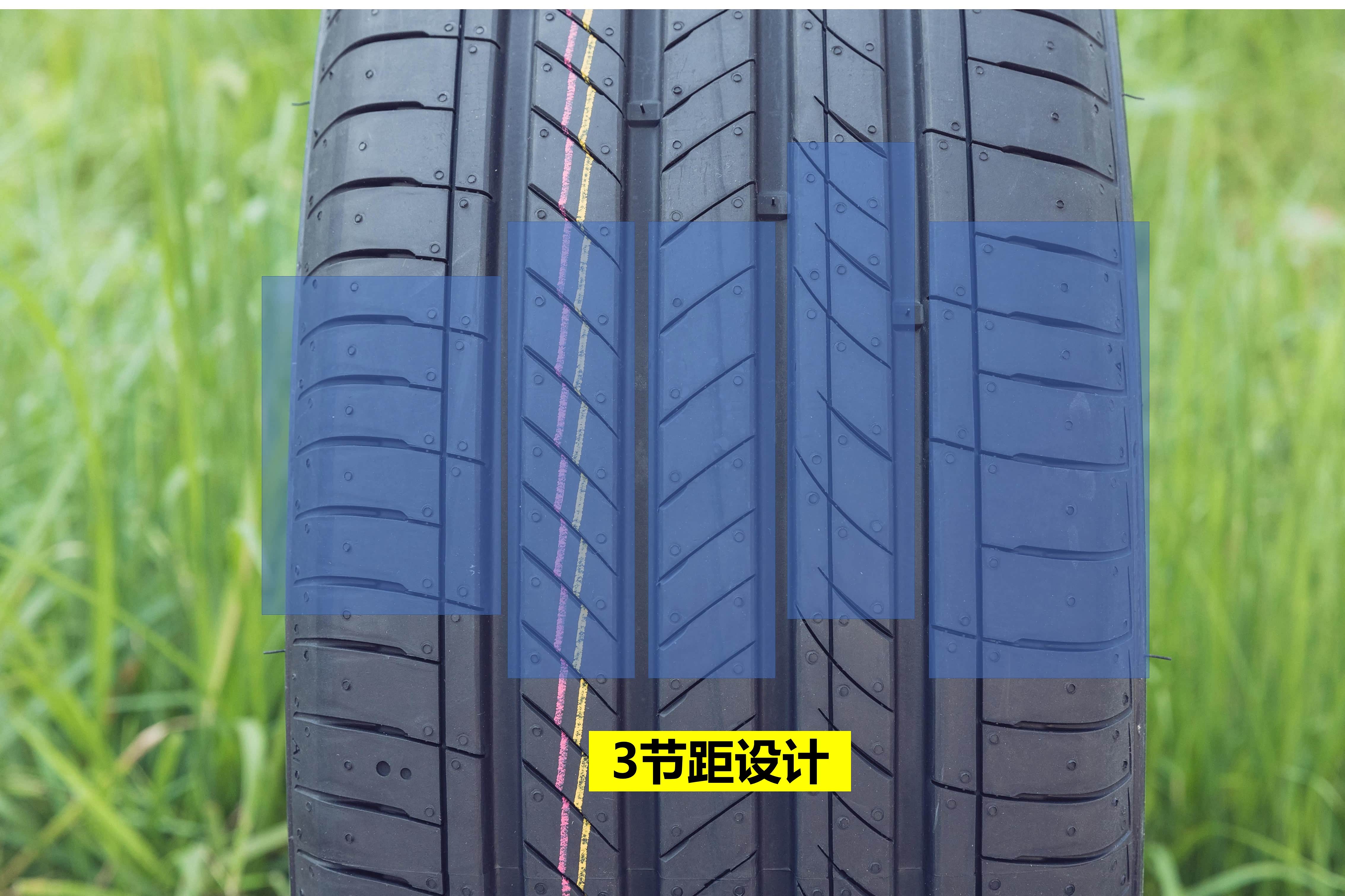 采用优化后的3节距设计,可以降低胎面产生的噪音