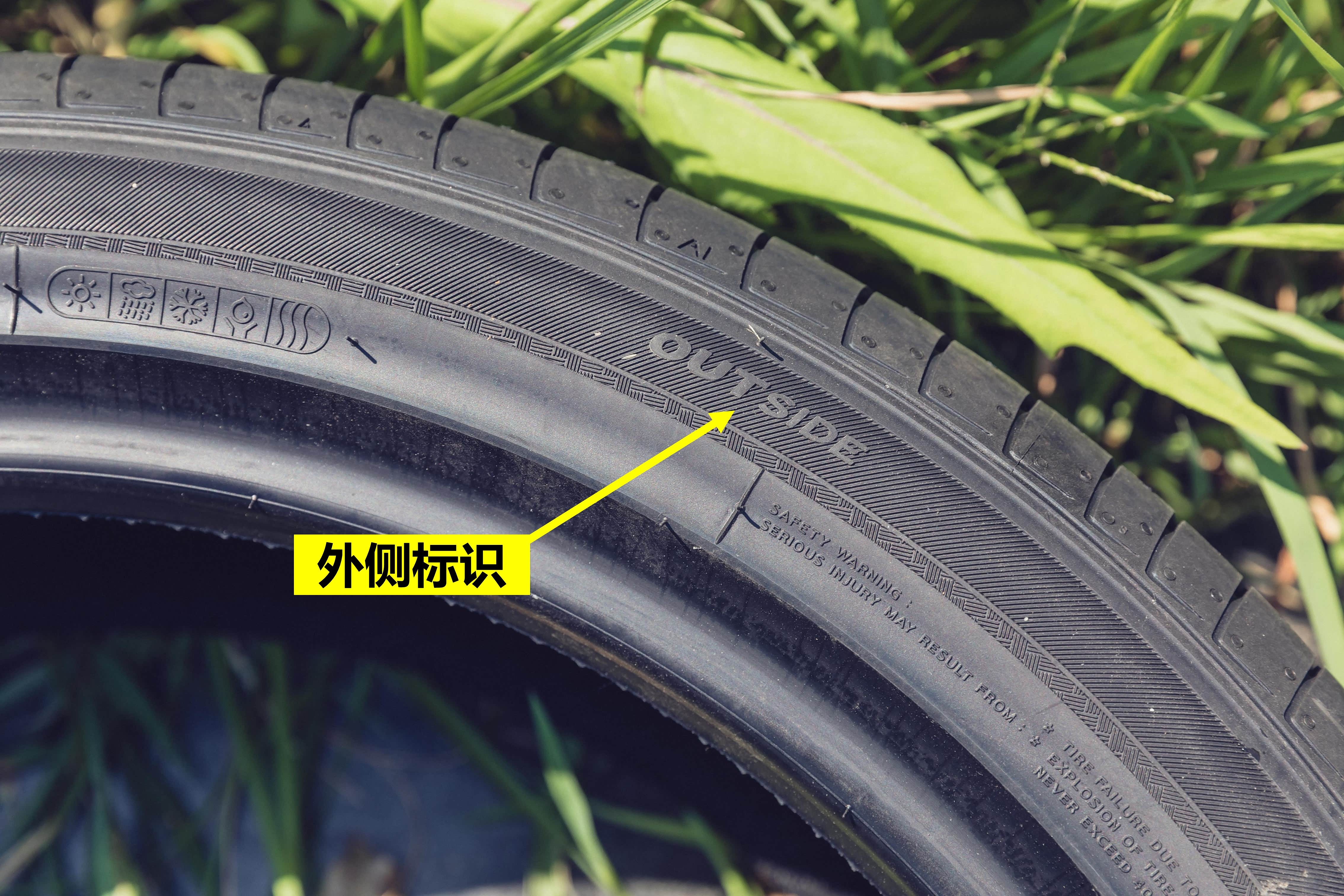 “OUTSIDE”表示这侧轮胎安装时候需要朝向外侧,而“INSIDE”此面则朝向内侧