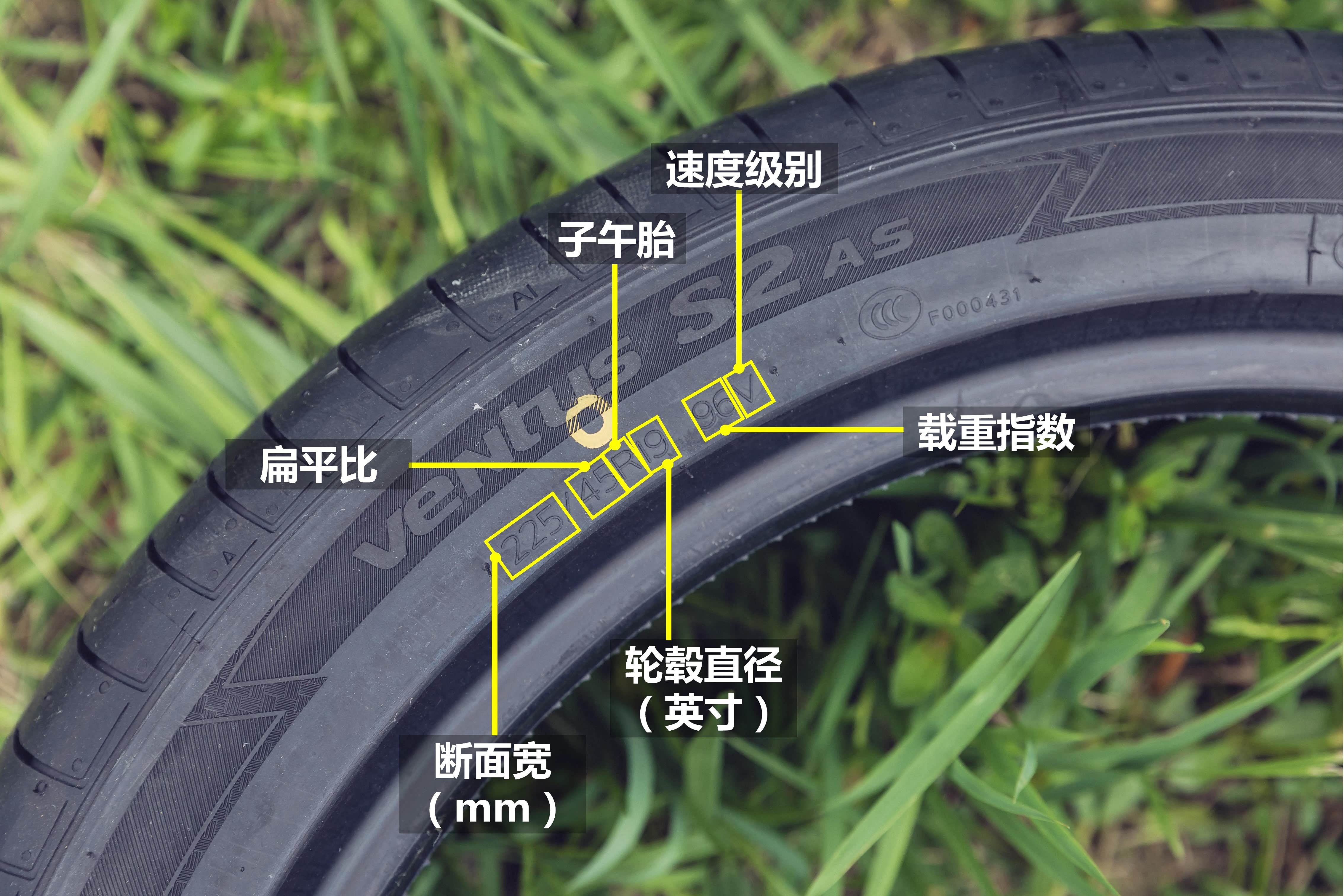 我们本次评测的轮胎型号是225/45R1996V,对于轮胎上的这组数字,你了解其具体含义吗?
