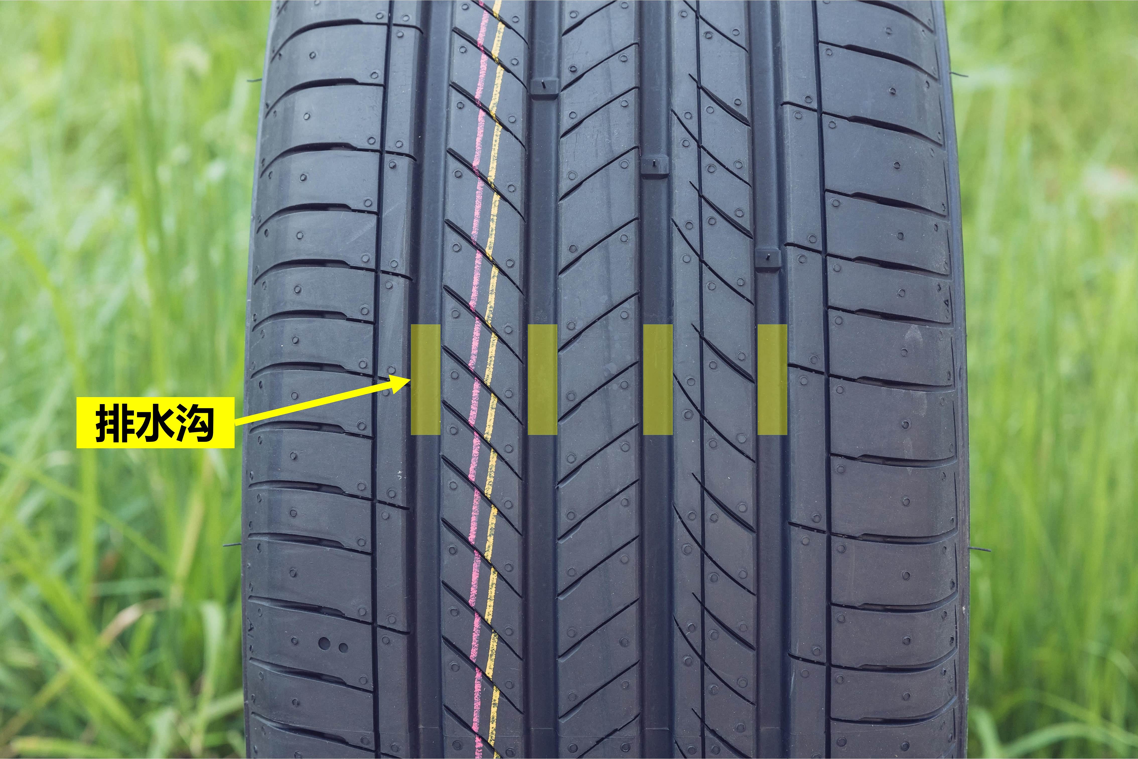 靠外侧的两条沟槽较窄、较浅,有利于提高侧向支撑力。而较宽的中间两条沟槽有利于轮胎通过积水路面时,迅速将积水排出,避免出现水滑效应。