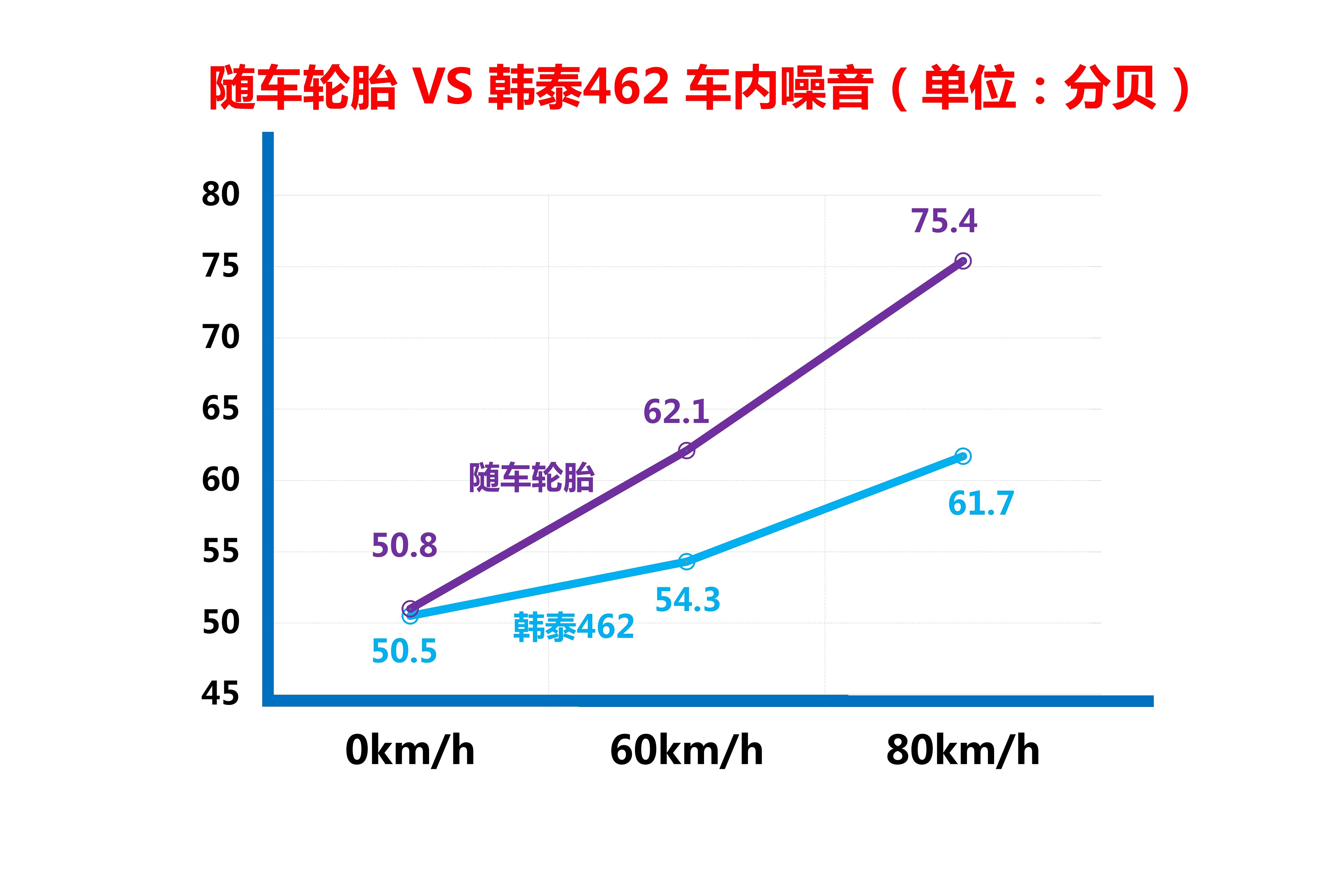 60km/h(韩泰H462):73.6分贝