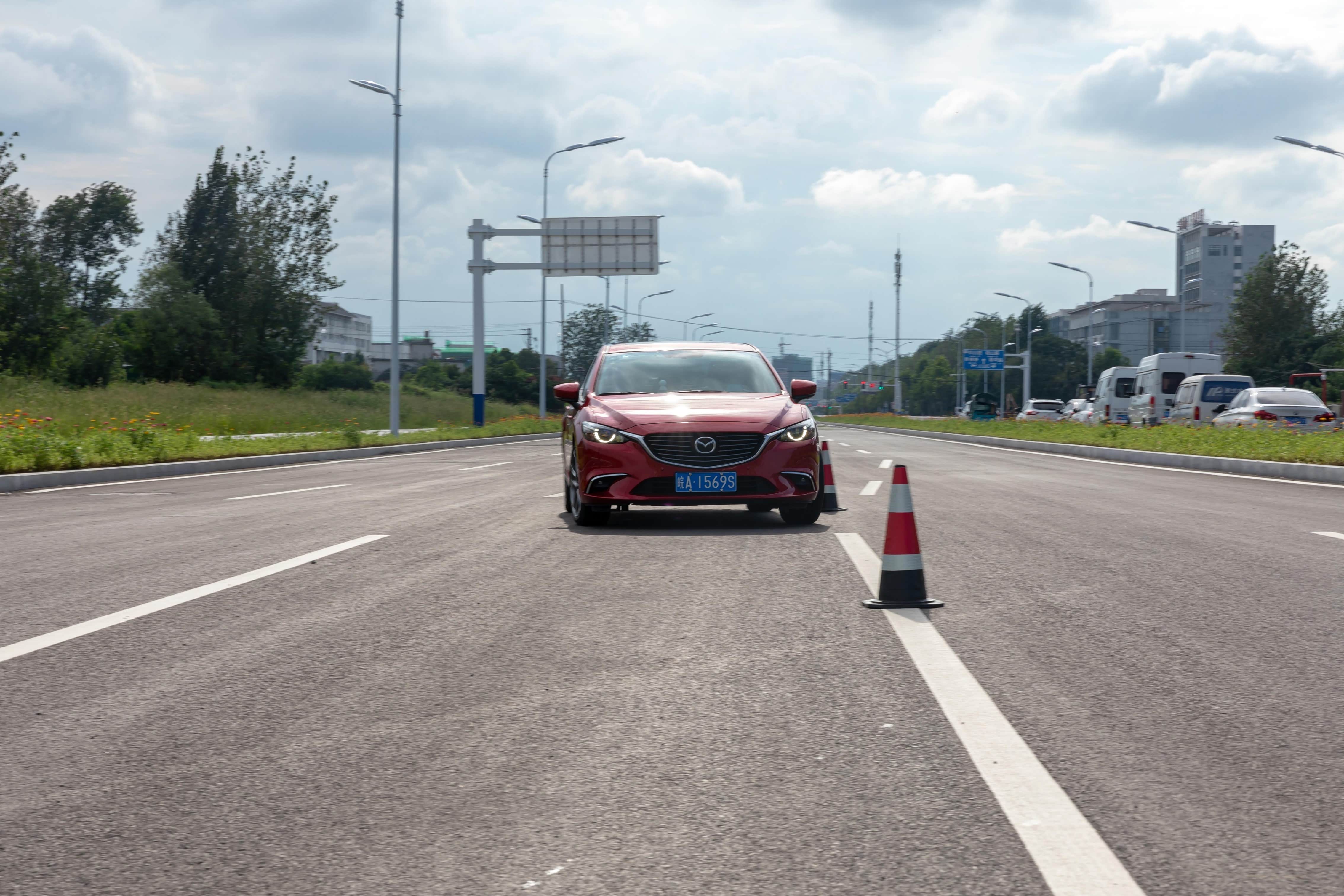 换上韩泰H462之后的感受呢?首先阿特兹的方向盘其实足够灵活,指向性也比较精准,韩泰H462在转向响应性方面比随车轮胎更为积极,使得绕桩动作完成非常顺畅,