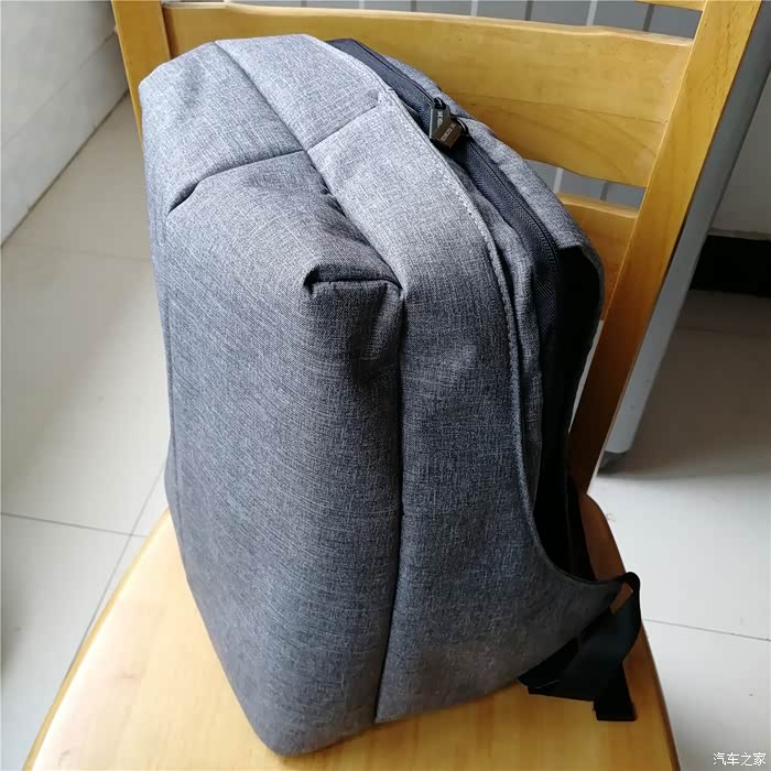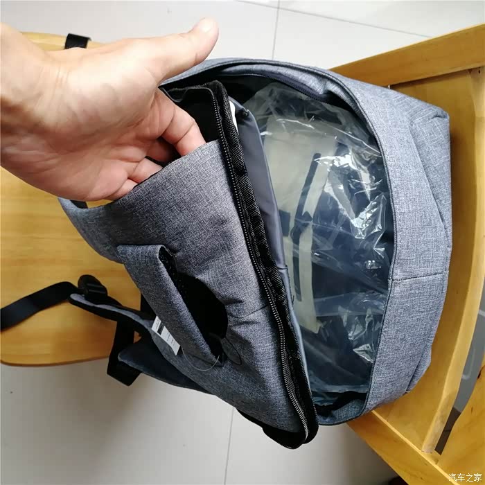 撕去塑料包装,背包看上去很有质感,造型也很好看,有一种商务范儿。