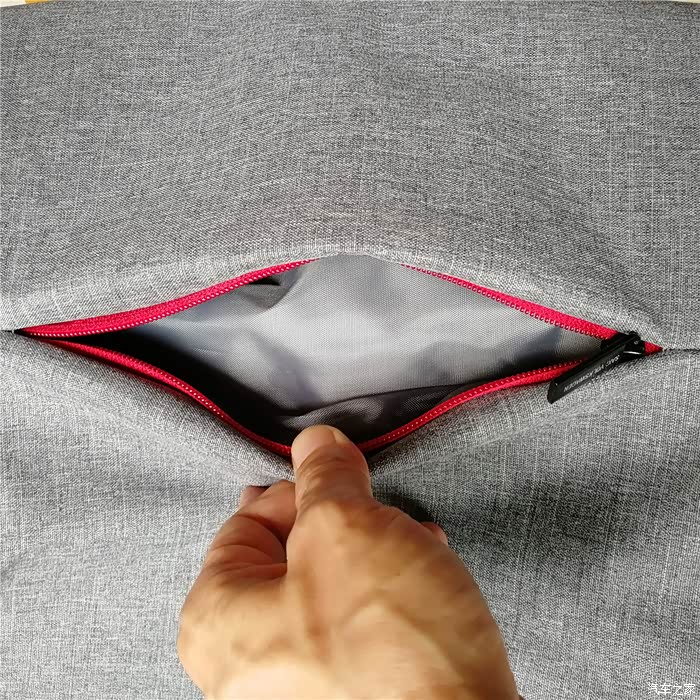 背包的拉链属于隐藏型,可以有效防止小偷小摸。哦,请忽略那几根线头,我已经剪掉了。